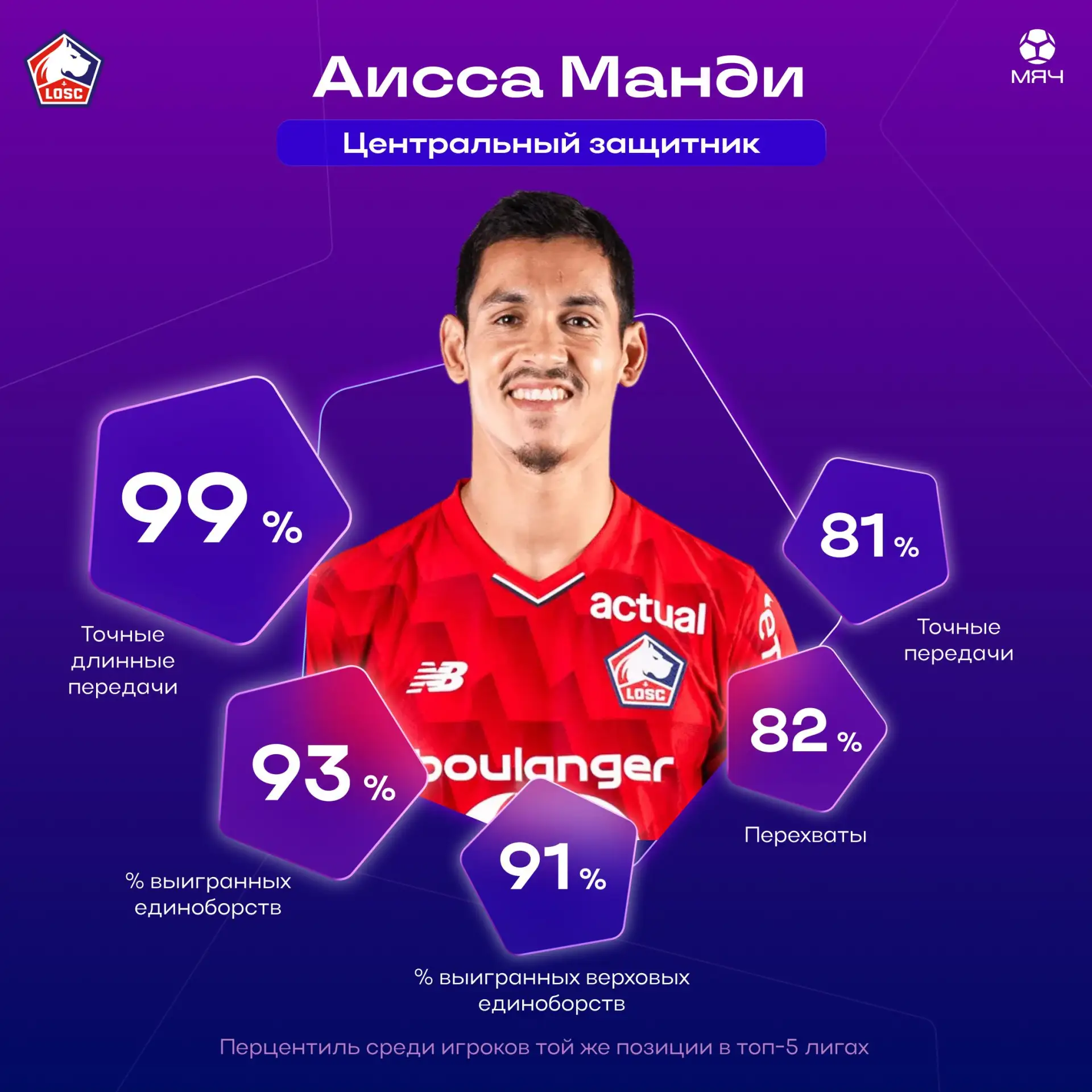 В дерби с «Лансом» лишил соседей шансов на чемпионство: совершил 2 отбора и 3 перехвата, выиграл 4/5 единоборств, отдал 61/68 точных передач и даже создал голевой момент.