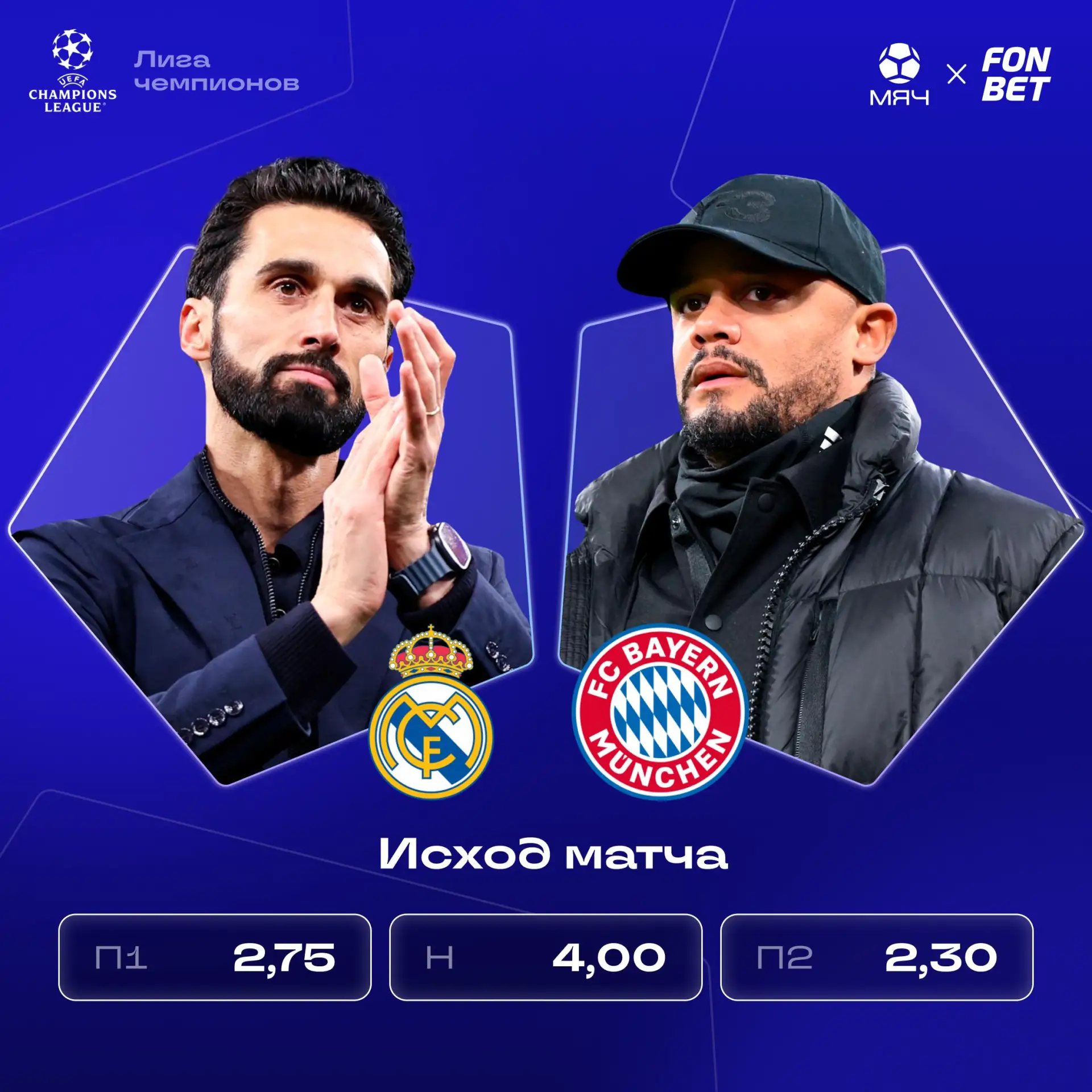 Так что, если верите, что «Реал» обыграет «Баварию» на своем поле и сегодня, то наши друзья из Fonbet дают на это кэф 2,8. А с промокодом MYACH можно поставить на это бездепозитный фрибет до 15 000 рублей.