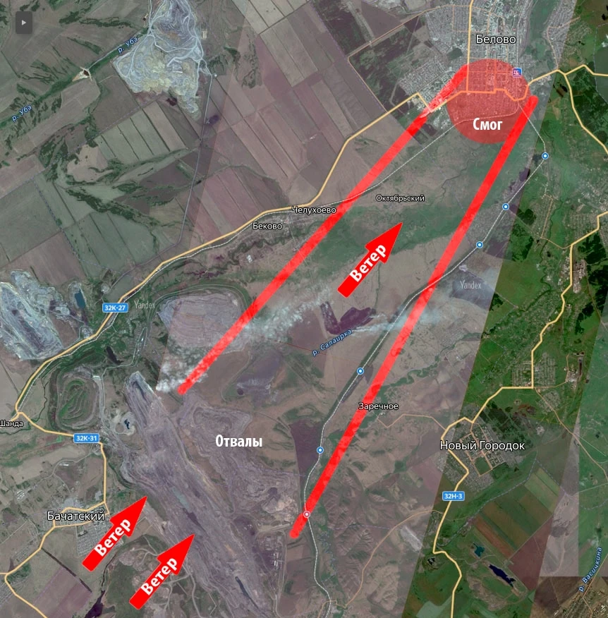 На страницах книг по краеведению можно найти карту ветров, которые преобладают в нашем районе. Согласно розе ветров чаще всего ветер у нас дует с юго-запада и юго-юго-запада. Если же взглянуть на привычную карту, то на юго-западе и юго-юго-западе относительно города располагаются отвалы угольных разрезов. Они растянулись на несколько километров с севера на юг между населенными пунктами Бачатский и Беково. И с каждым годом терриконы продолжают расти и в ширину, и, что самое важное, в высоту. Эти рукотворные горы, наверняка, вносят свои коррективы в движение ветра. Проще говоря: печную гарь просто перестало выдувать из центра города.