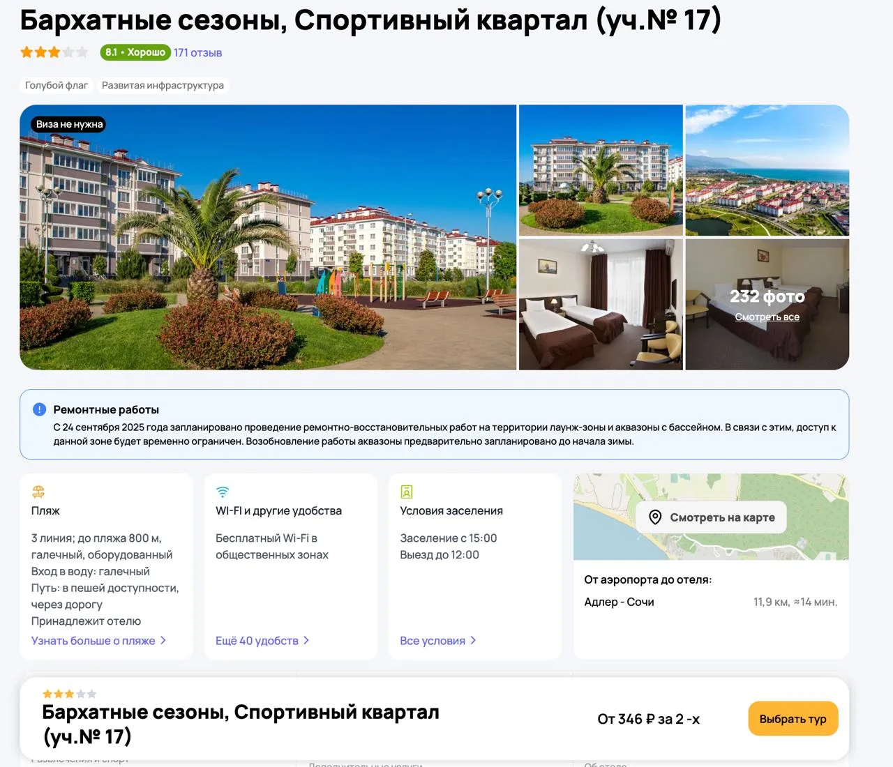 💥Пожить в Сочи в большом отельном комплексе всего за 190 рублей в сутки на двоих!