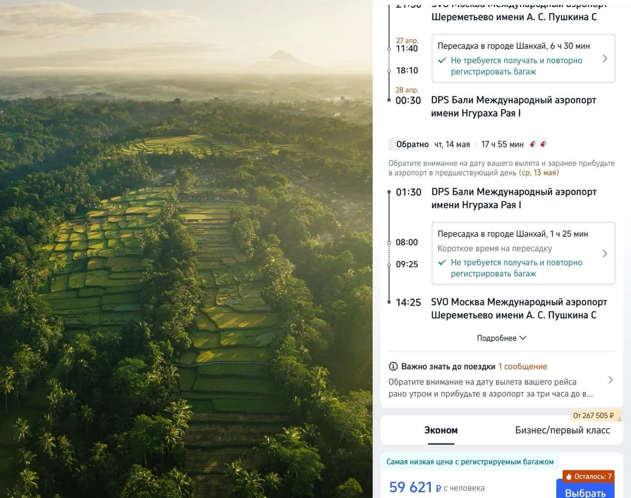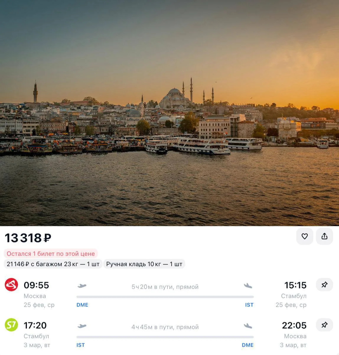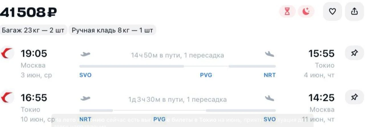 Доступная цена на направление, которое обычно планируют сильно заранее.