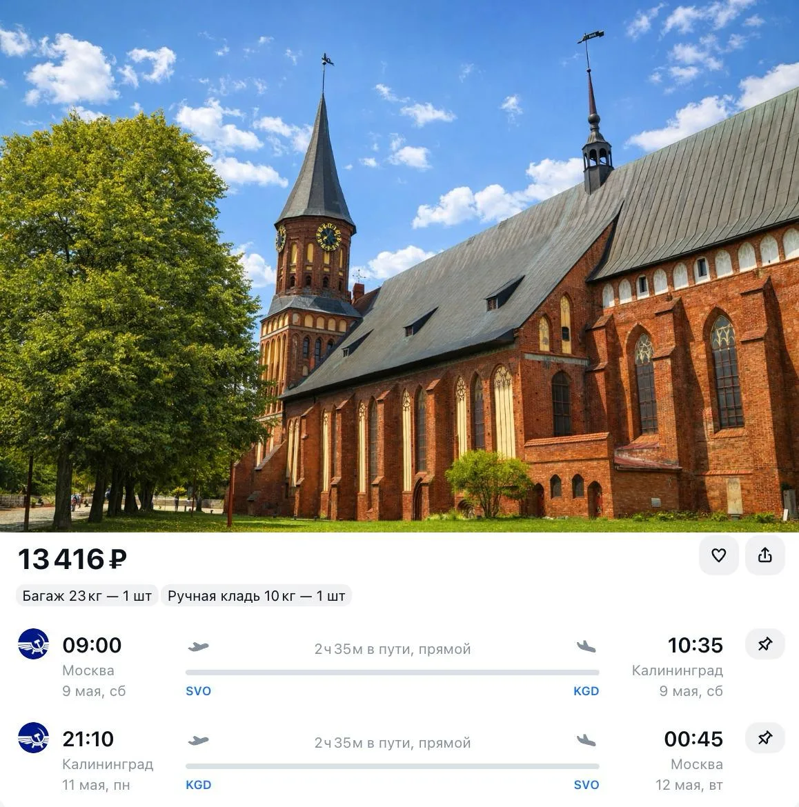 В эту пятницу всего за 21 800 ₽ в одну сторону, это прямой рейс Аэрофлота с багажом!