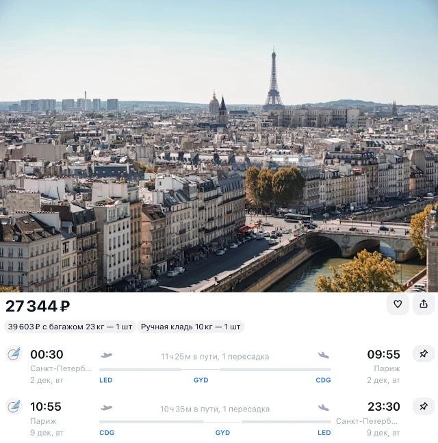 Москва - Париж всего за 3 640 ₽ в одну сторону: https://avs.io/68thx