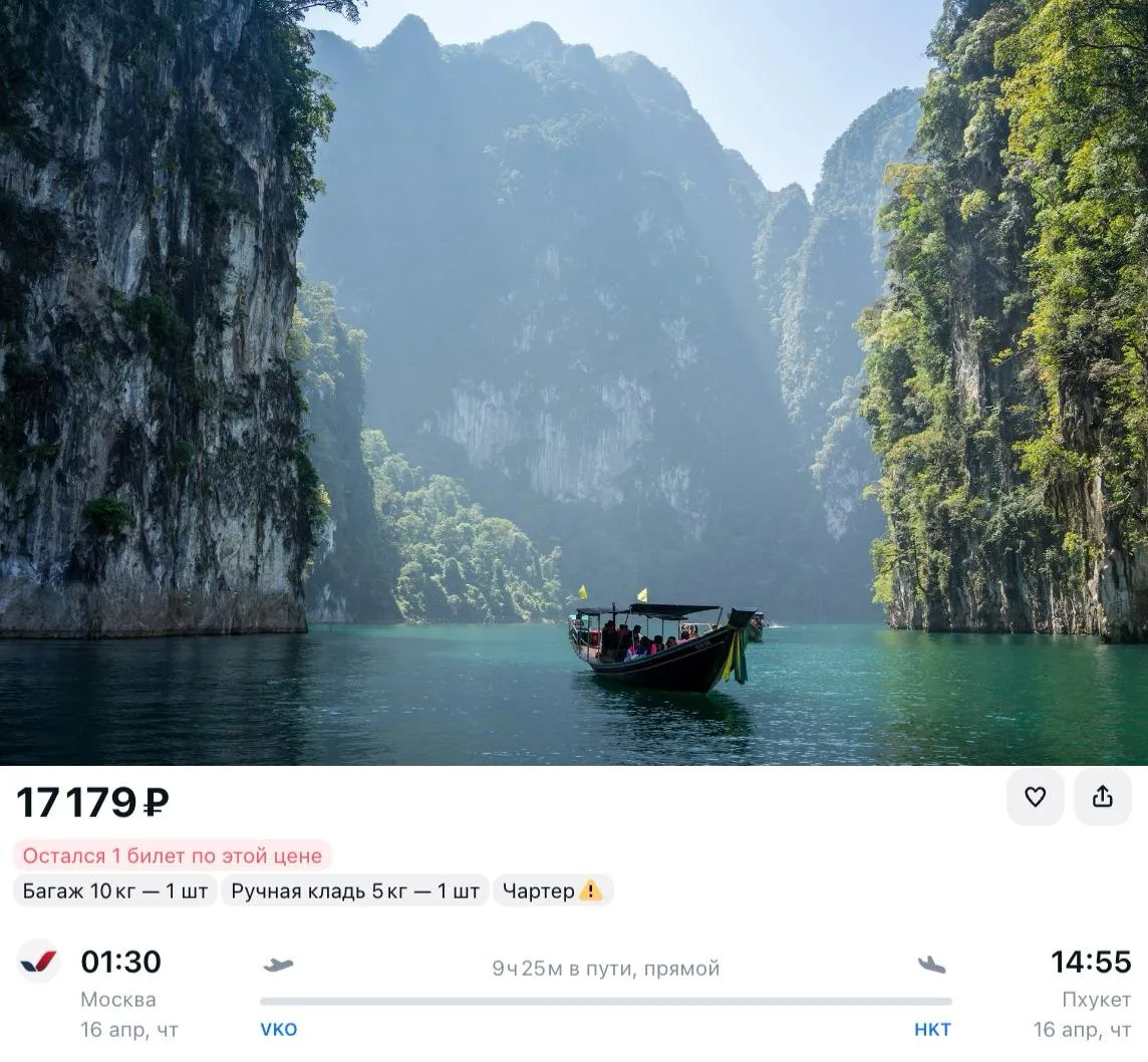 Акция на Туту идёт до 30 апреля. Если планировали куда-то ехать — сейчас самое время 👀