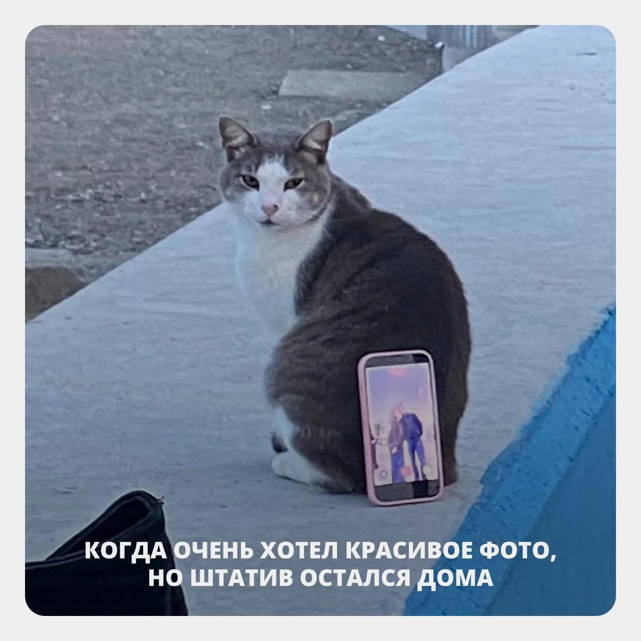 1️⃣ Найдите «естественный штатив». Это может быть что угодно: парапет, большой камень, ступенька, капот машины или даже столик в кафе. Просто поставьте на него телефон, включите таймер и отойдите.