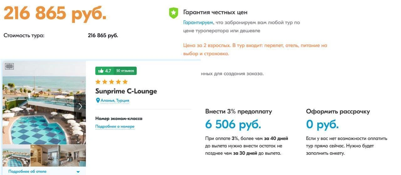 Эти туры можно купить по предоплате 50%, вторую половину можно внести за 16 или 14 дней до вылета