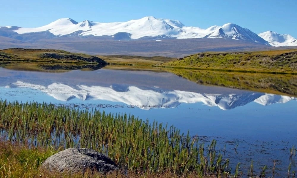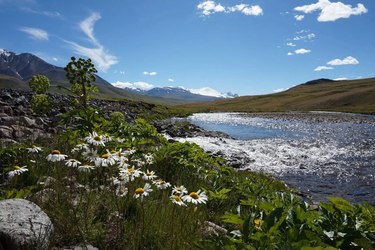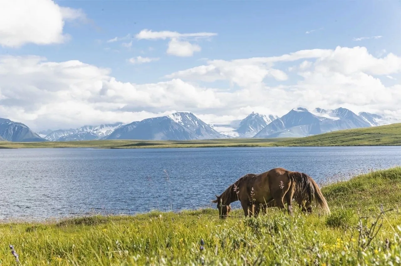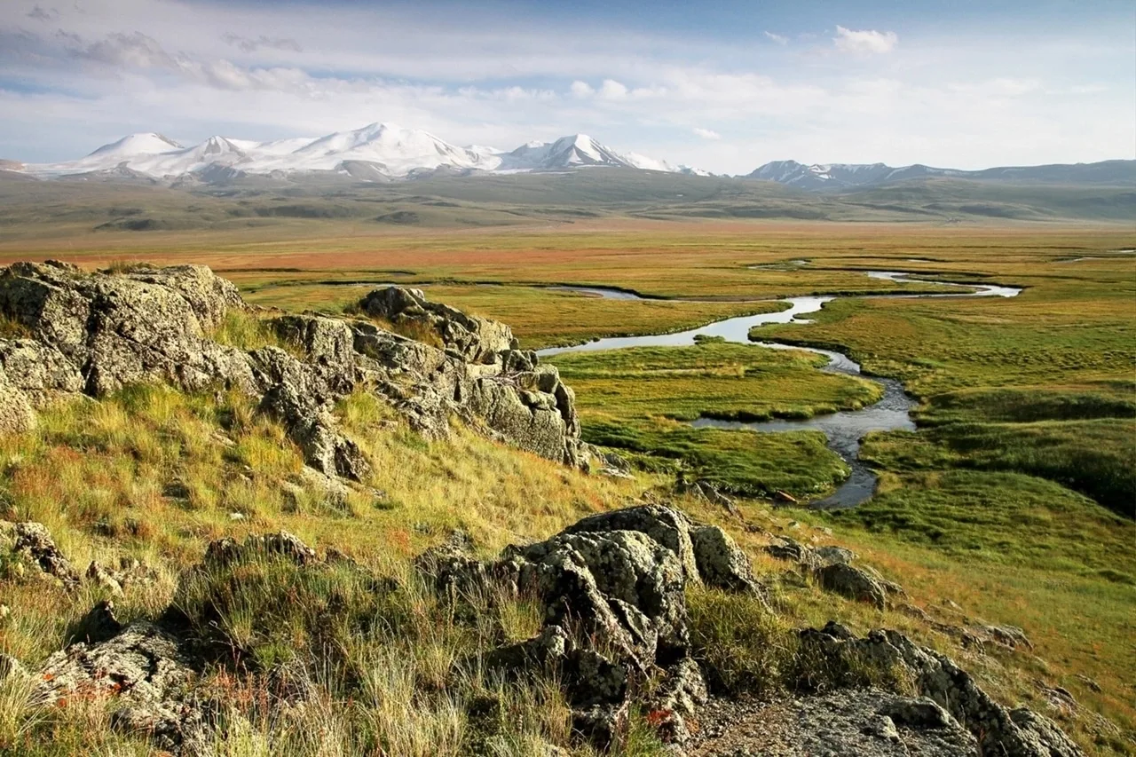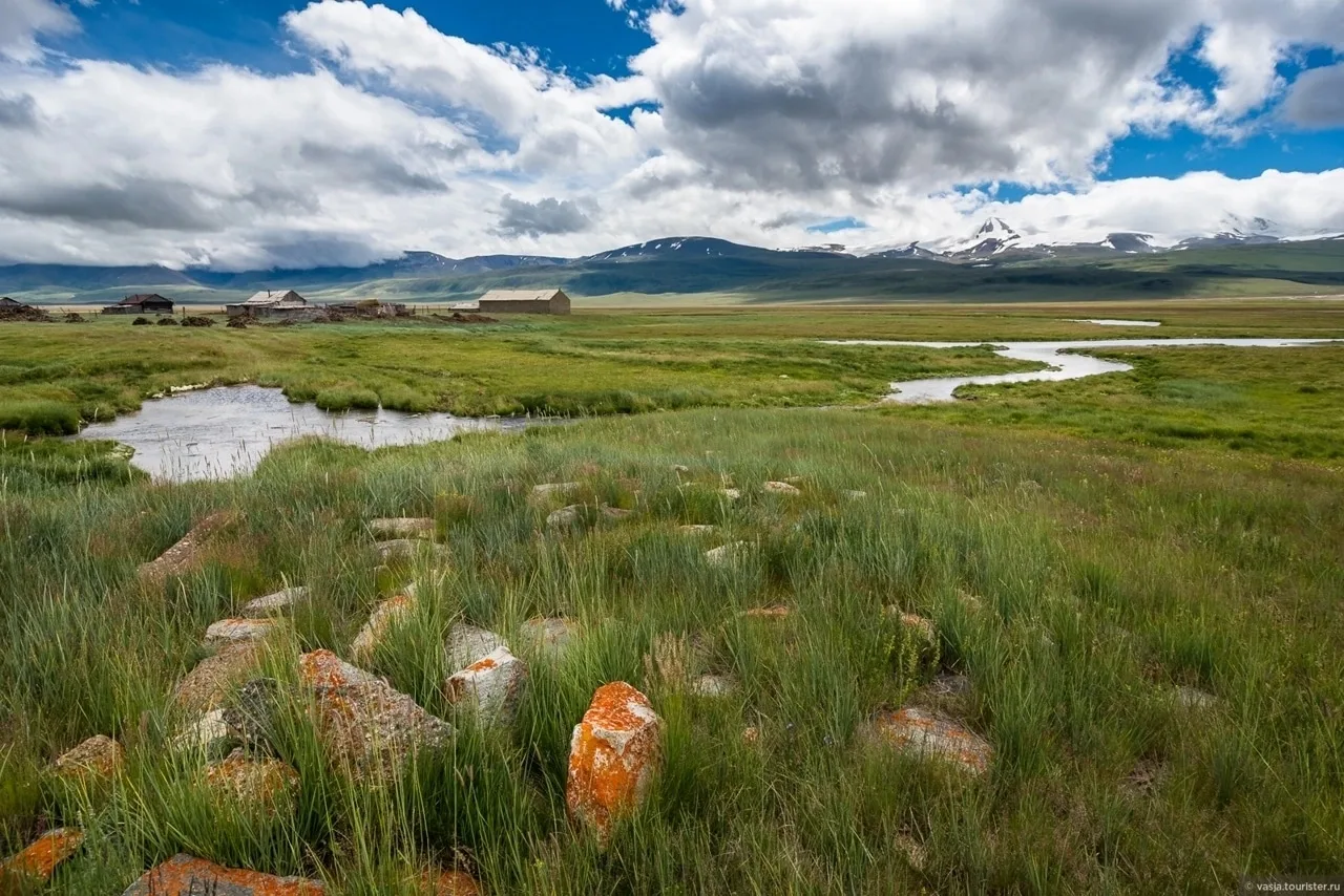 В широченных долинах блестят озера и ручьи, на горизонте серебрятся шапки гор — редко где увидишь такие нескончаемые просторы.