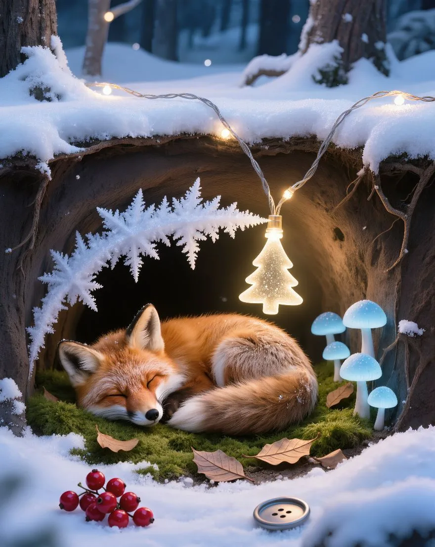 В такой атмосфере кажется, что время остановилось, и мир замер в ожидании волшебства зимы. Домик словно живой, дышащий в такт мягкому покрову снега, будто сам природа обняла его своей ласковой зимней ладонью.