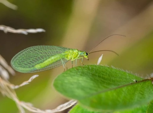 Златоглазка. Также питается тлей и белокрылкой. Иногда этих насекомых даже специально разводят для тепличных хозяйств. Особенно эти насекомые активны на папоротниках.