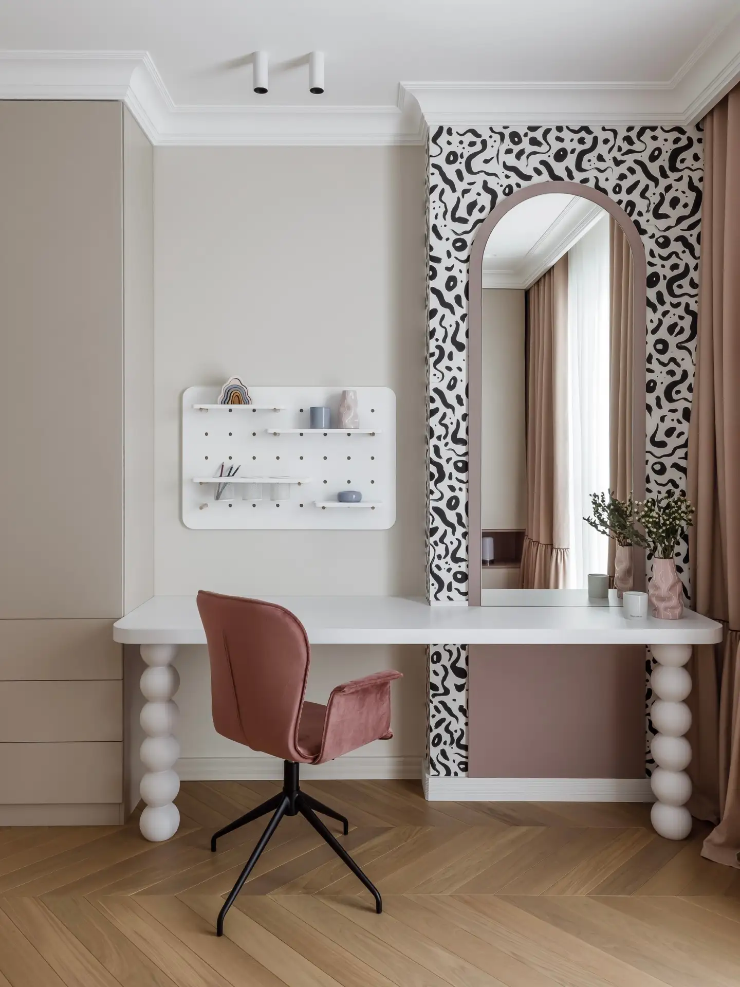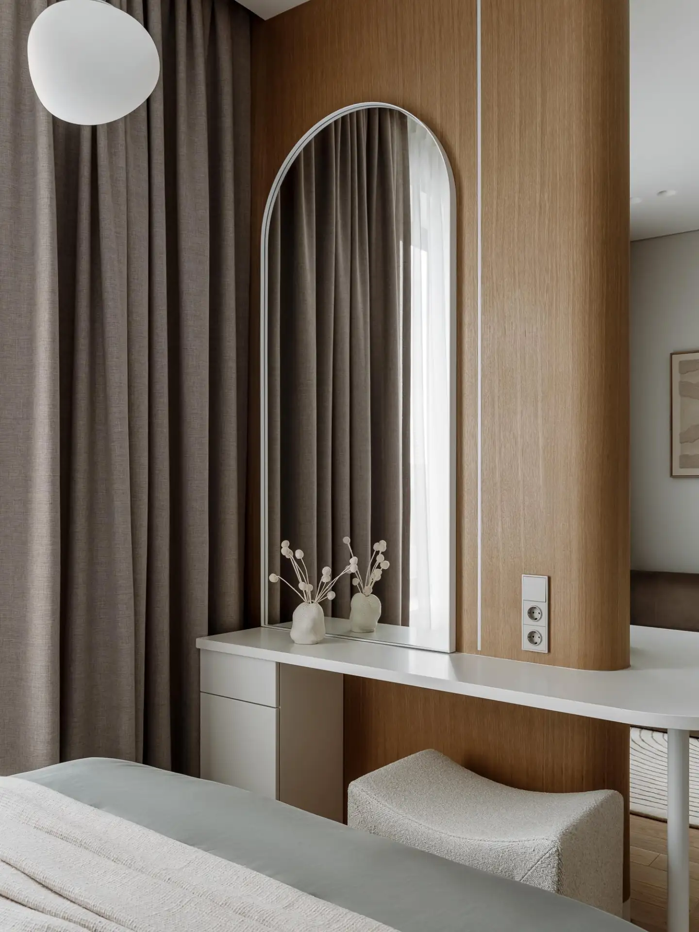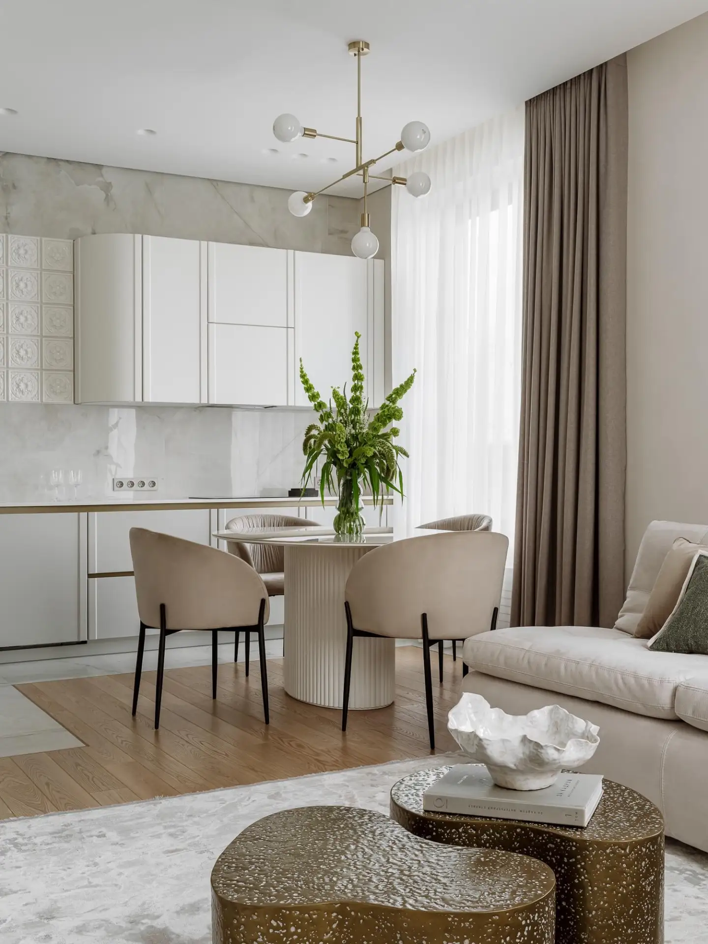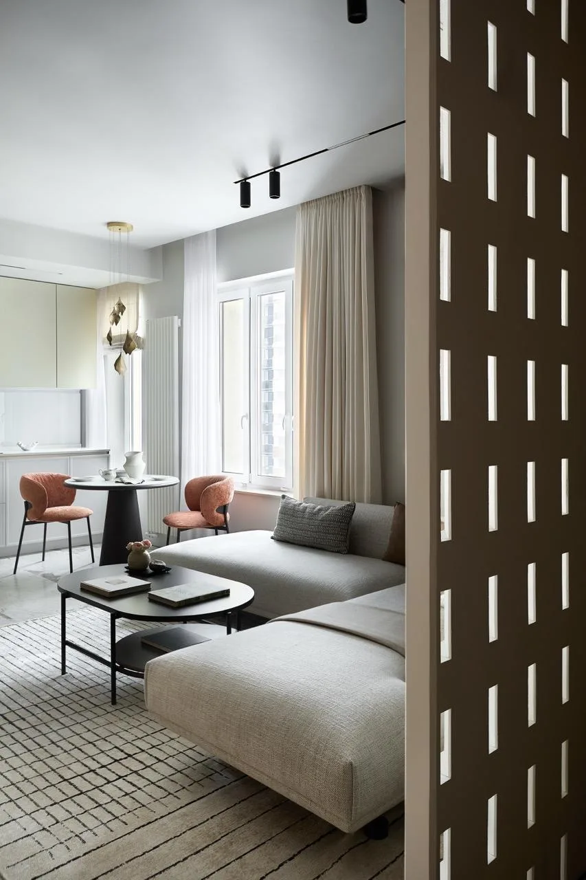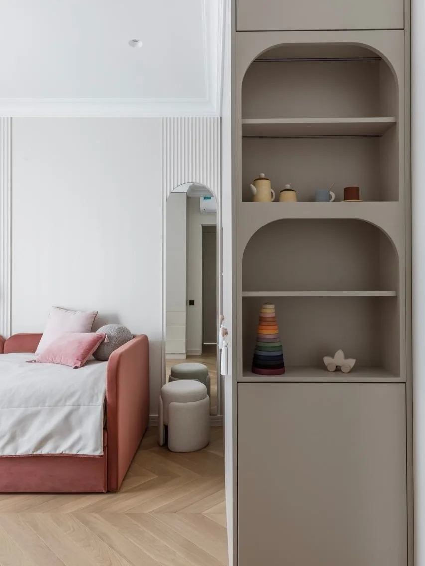 Радиусные углы и нежный текстиль: квартира в спокойных тонах