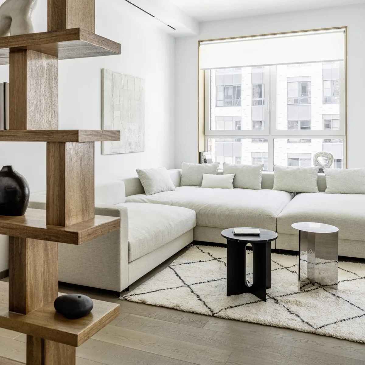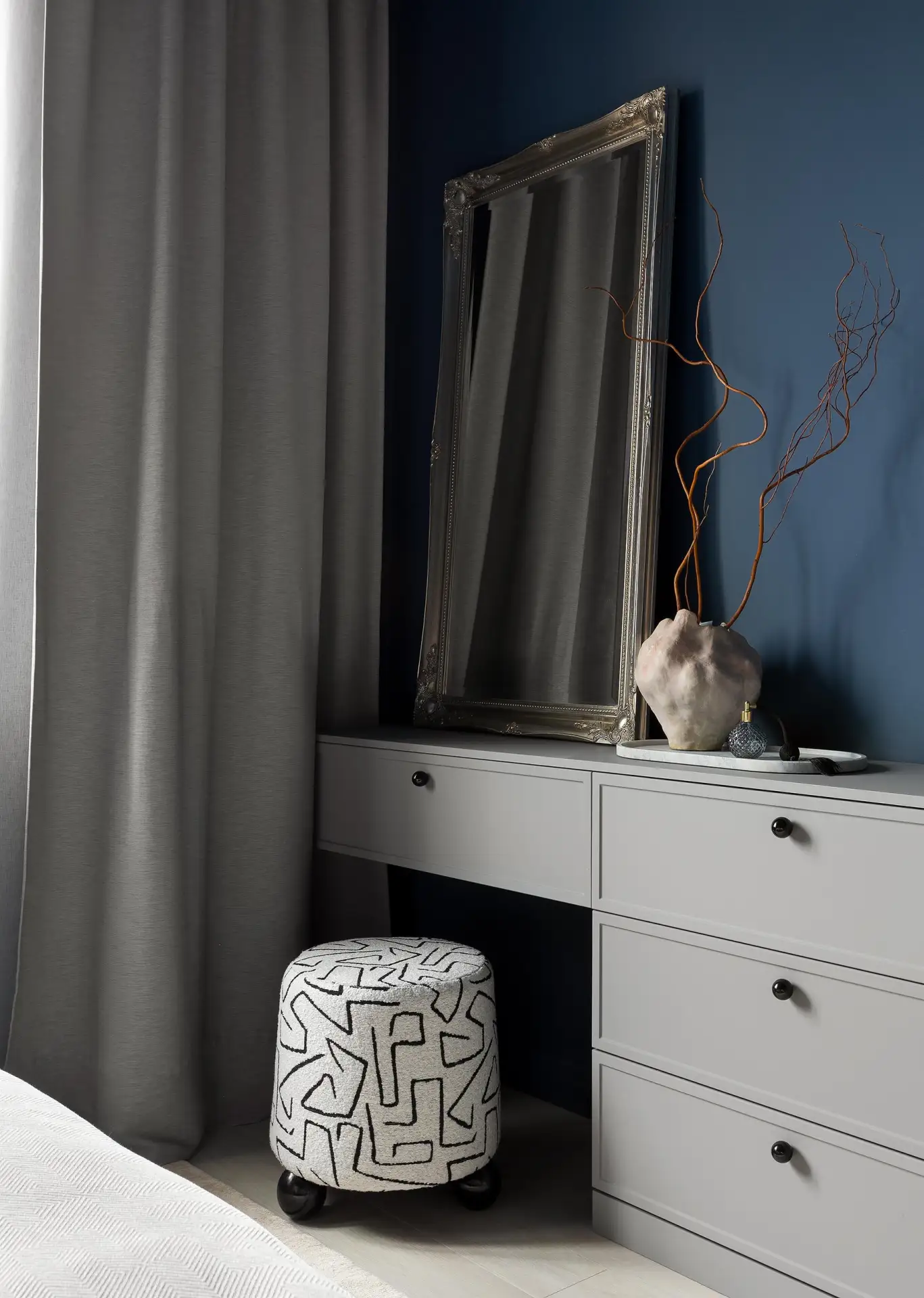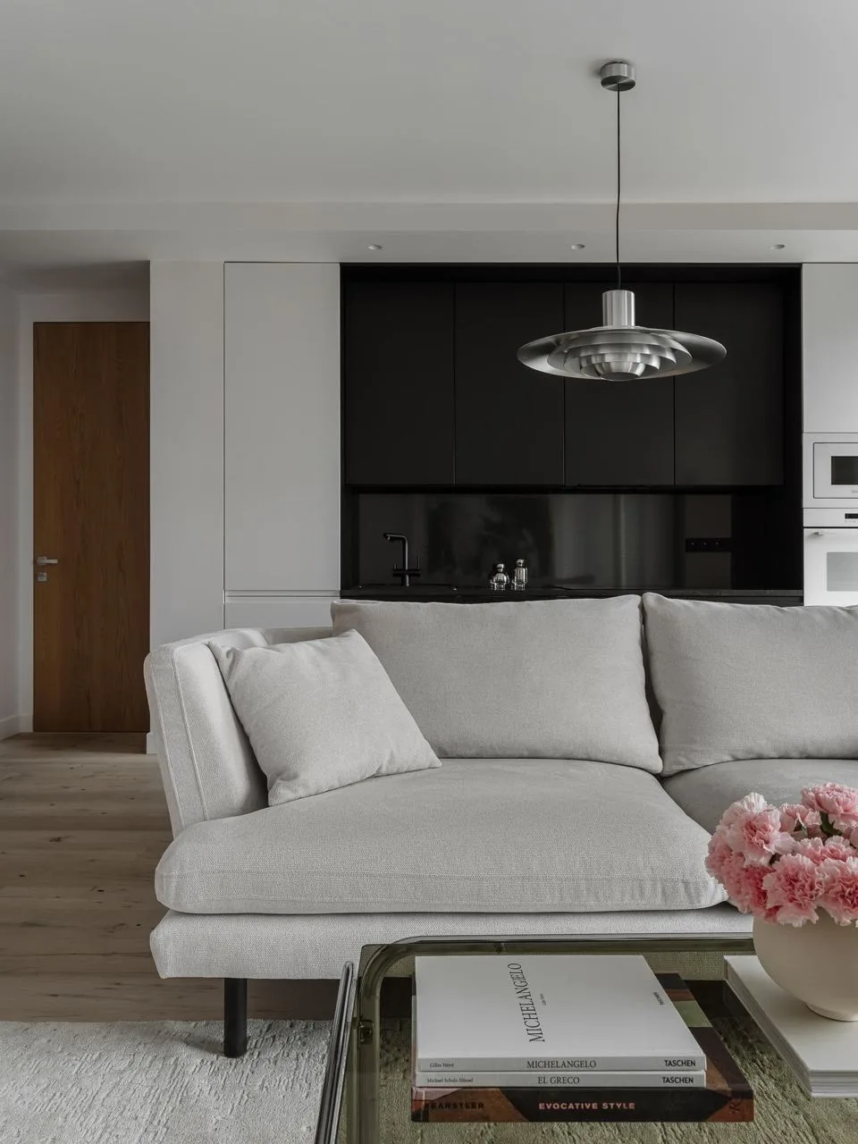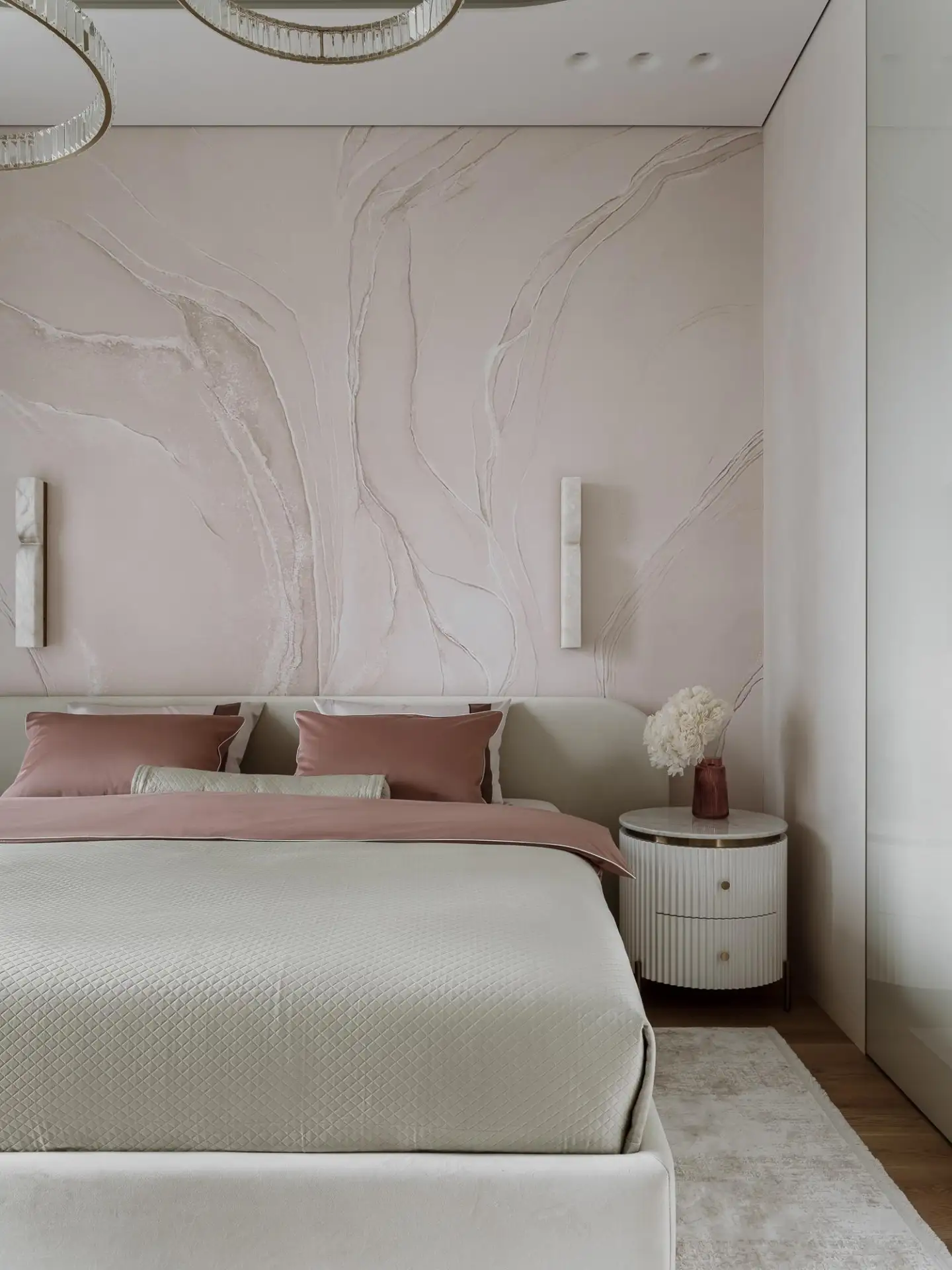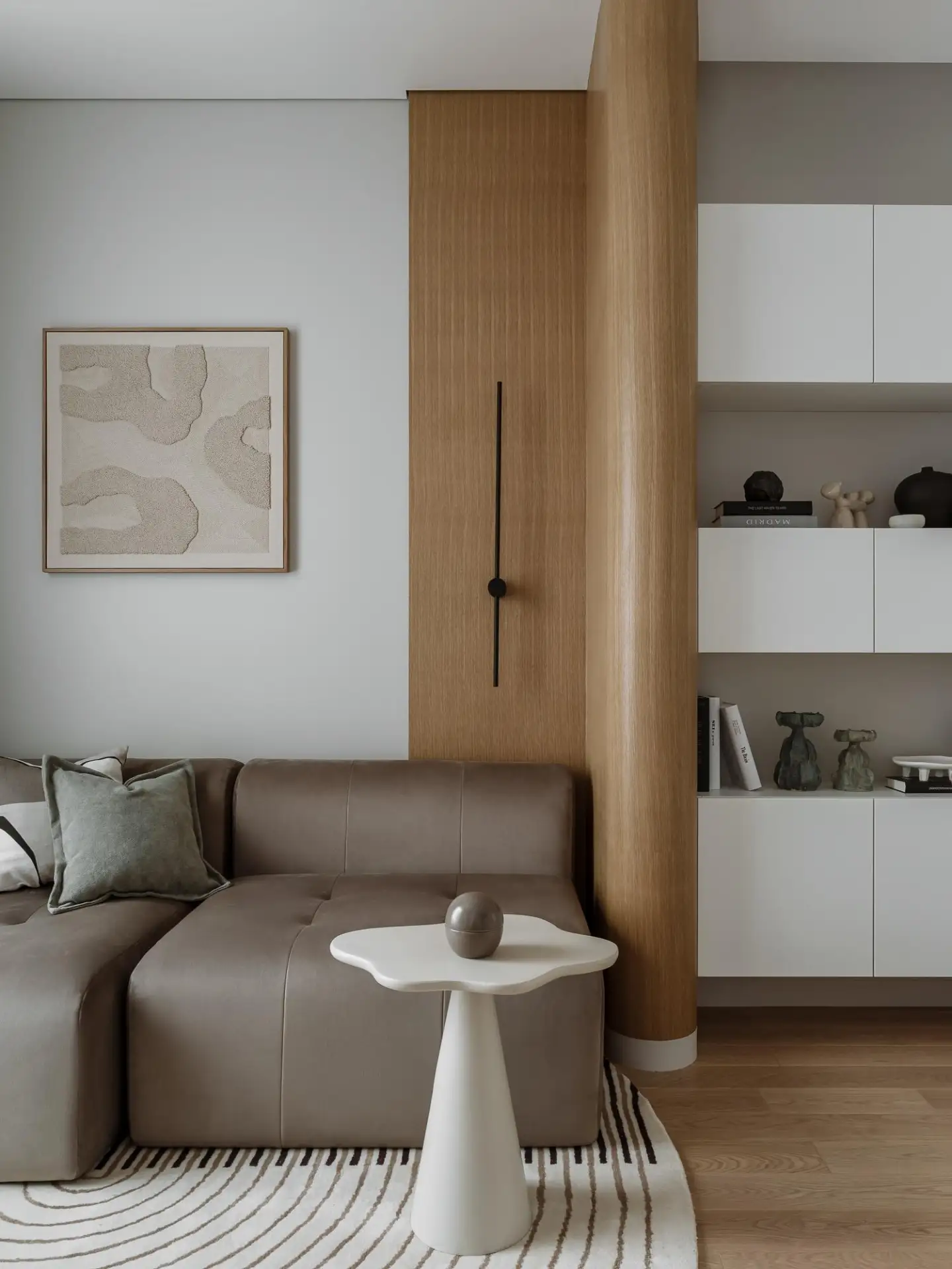 Радиусные углы и нежный текстиль: квартира в спокойных тонах