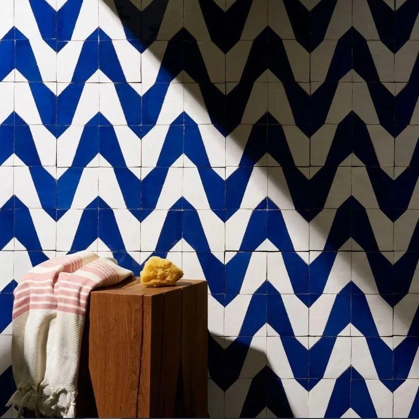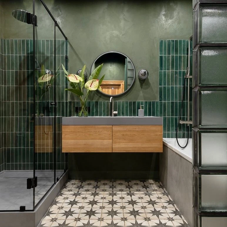✓ Один из трендовых материалов этого года — плитка ручной работы. В моде текстура, имитирующая камень, мрамор или бетон, но с теплыми оттенками и более мягкими прожилками.