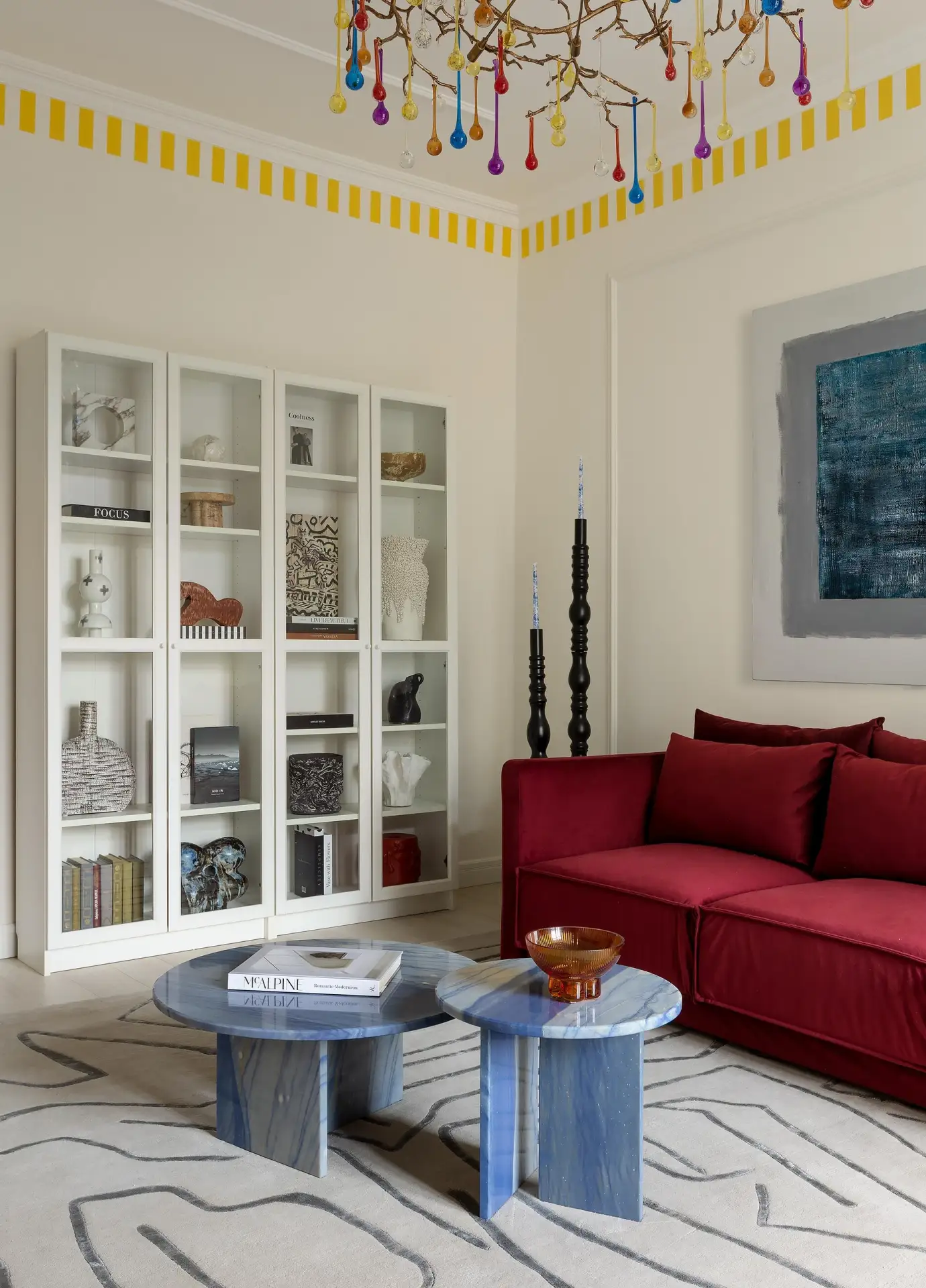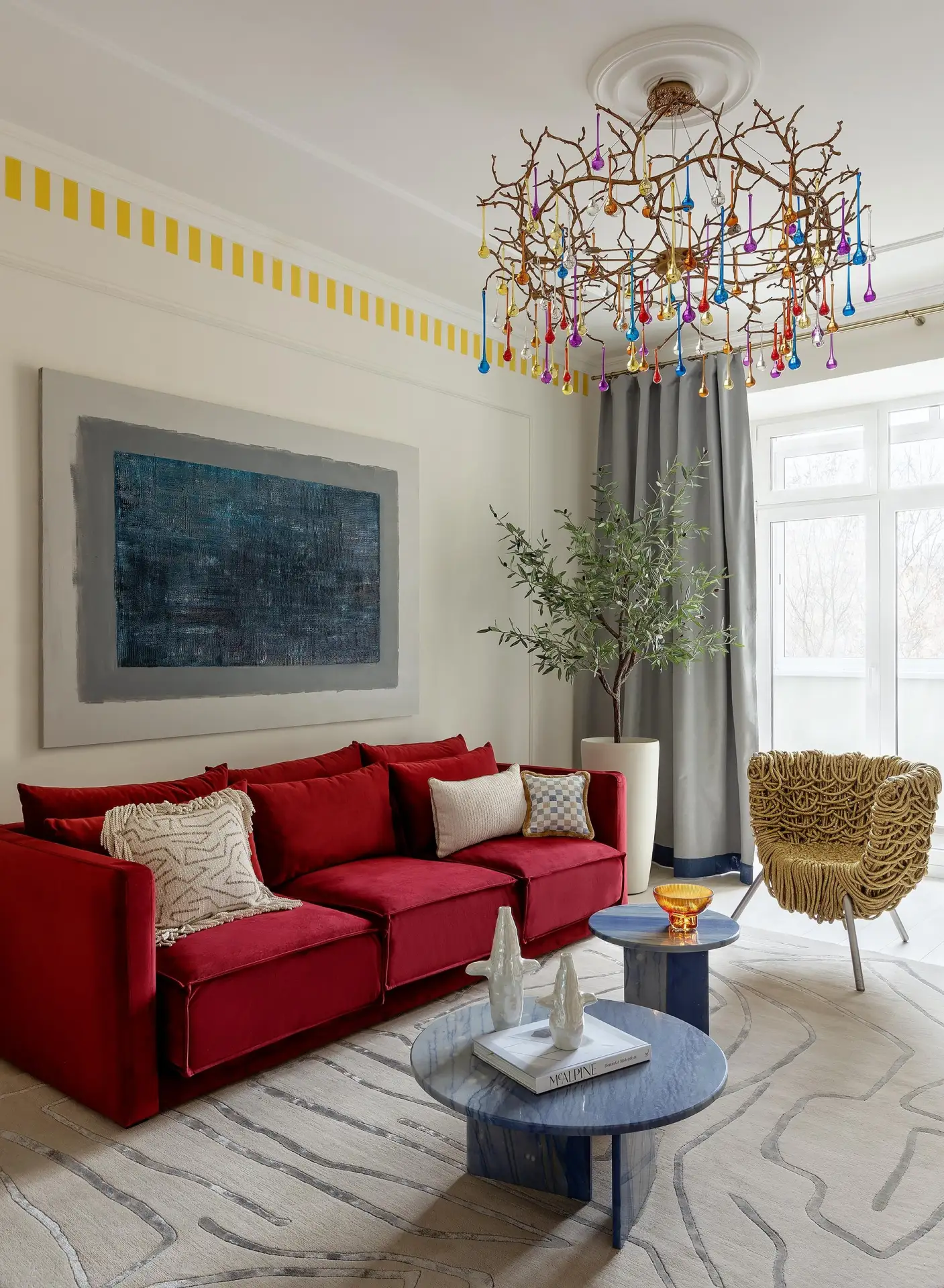Яркая люстра, желтый карниз и цветные потолки: квартира в московской сталинке