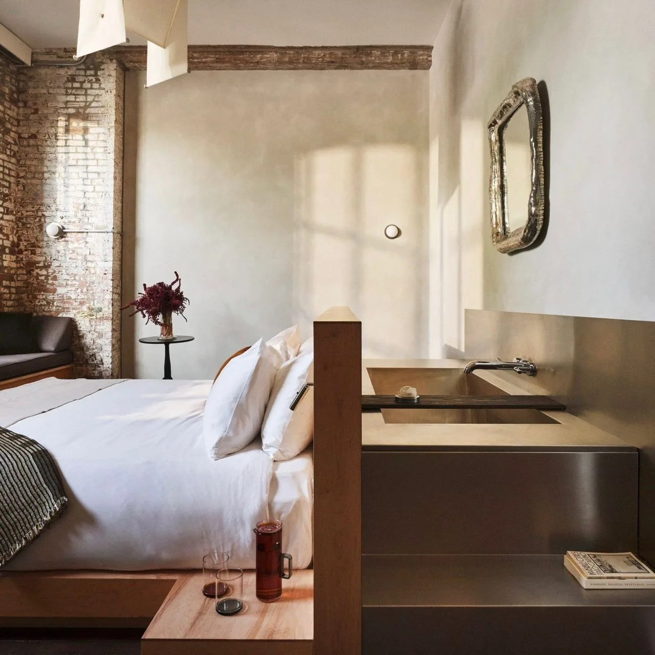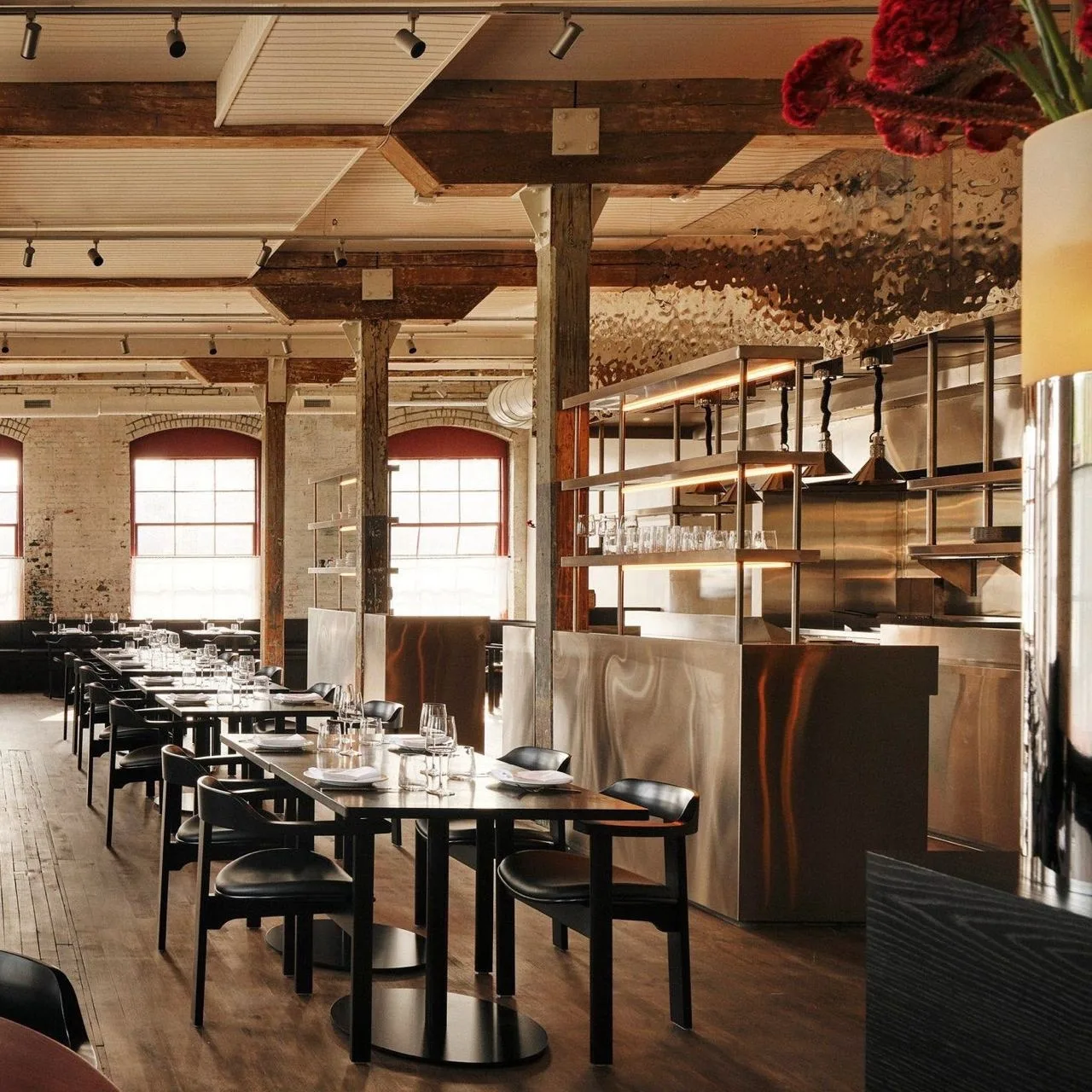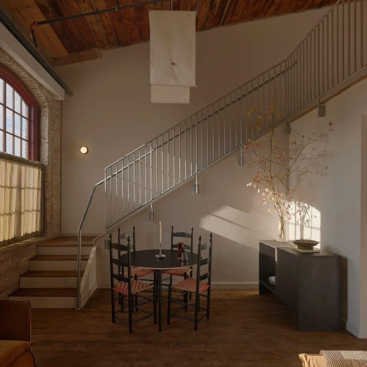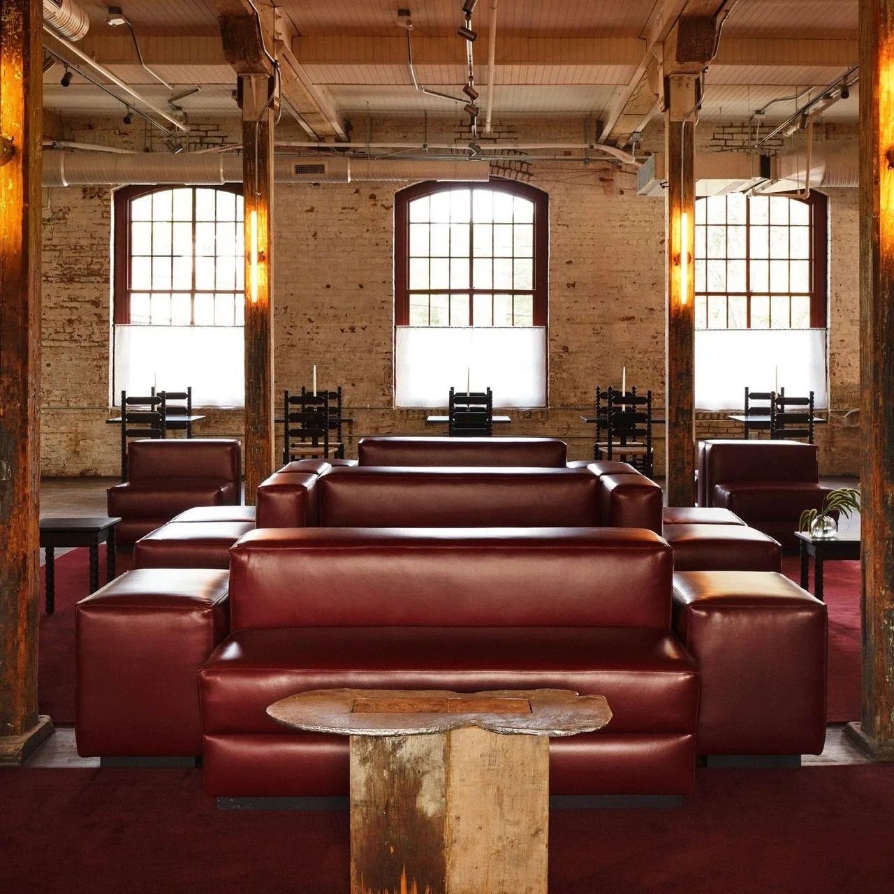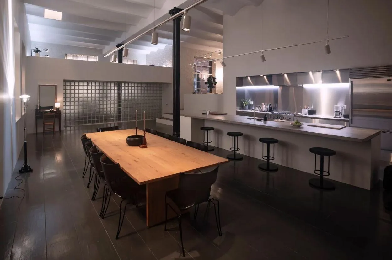 В здании сохранили все, что могли: большие открытые пространства, огромные окна, деревянные несущие конструкции и полы. Архитекторы намеренно смешали старое с новым — патинированный кирпич и современная мебель, грубые балки и гладкие металлические поверхности.