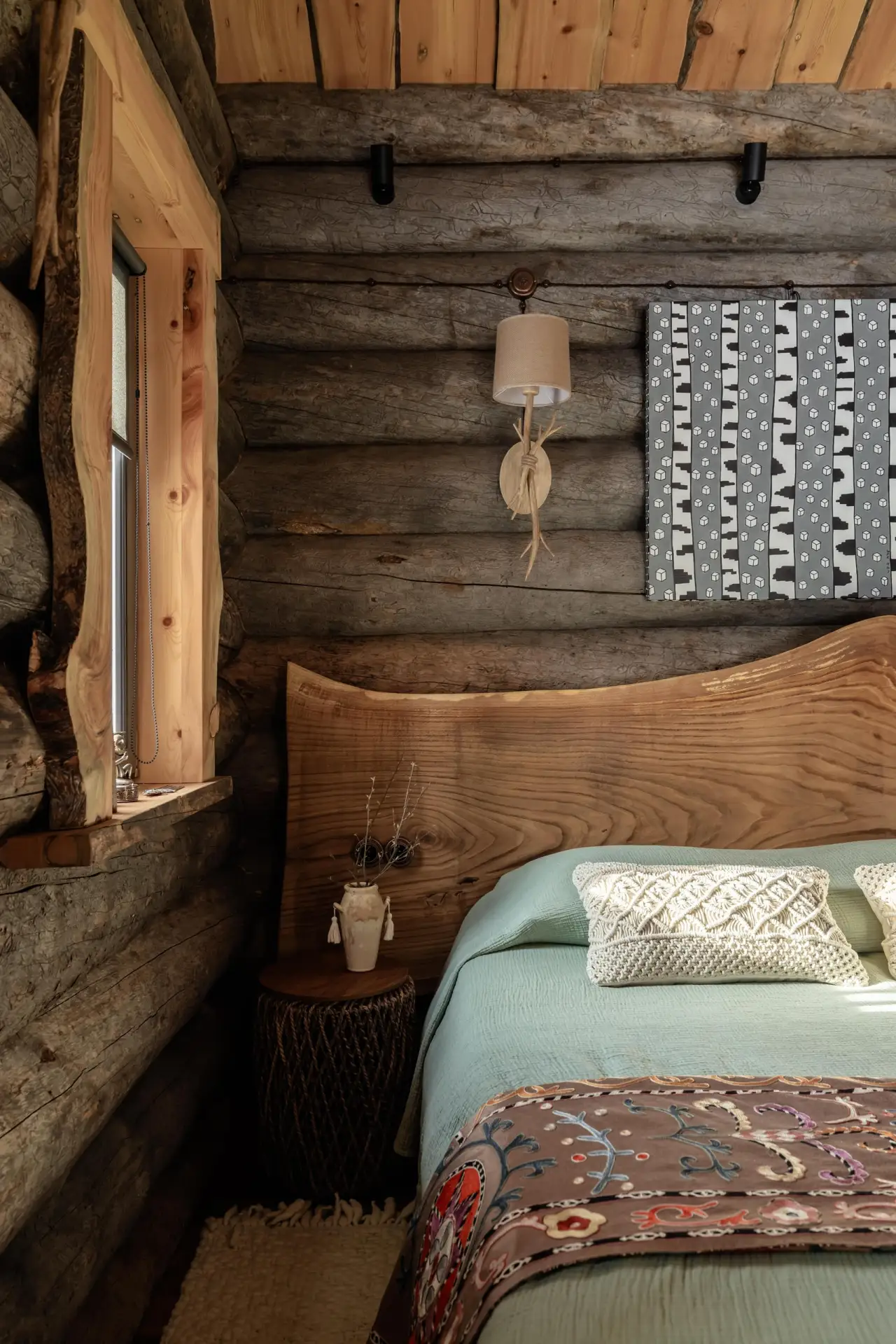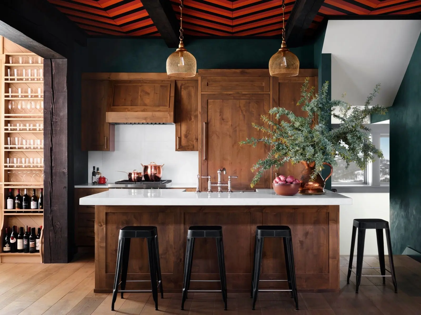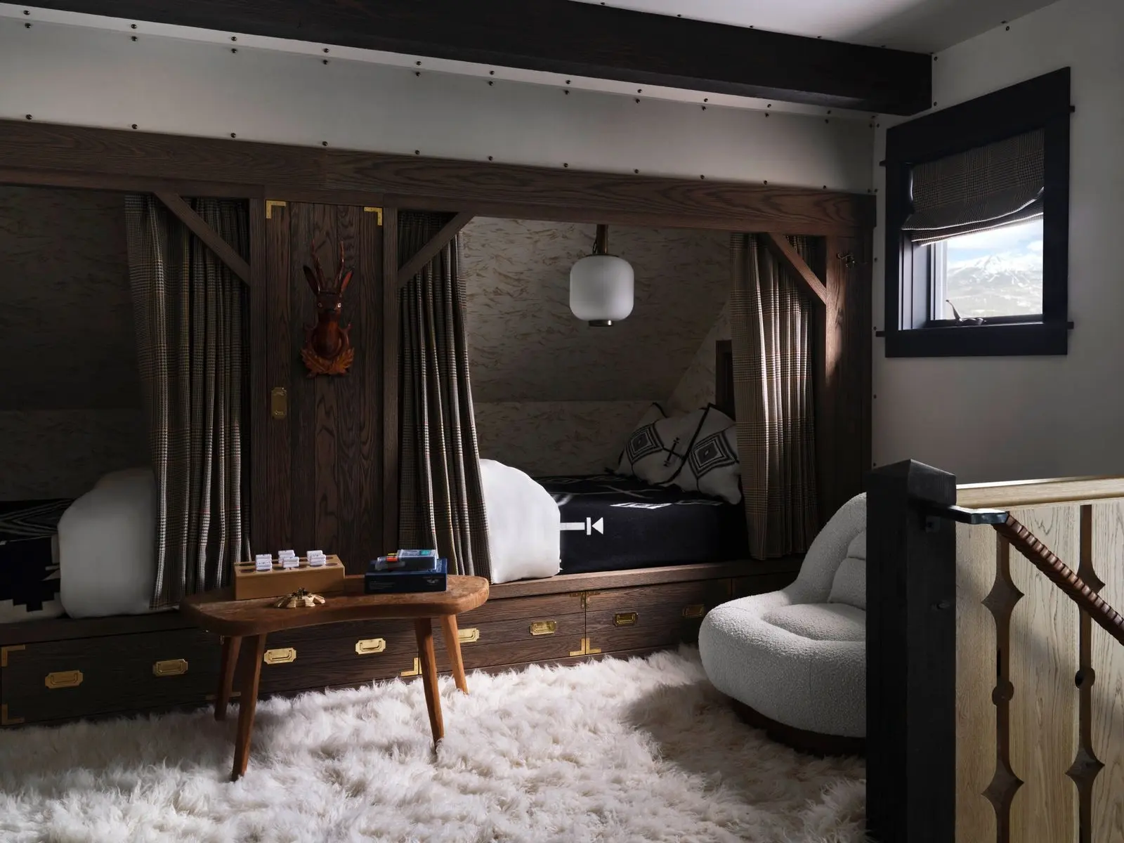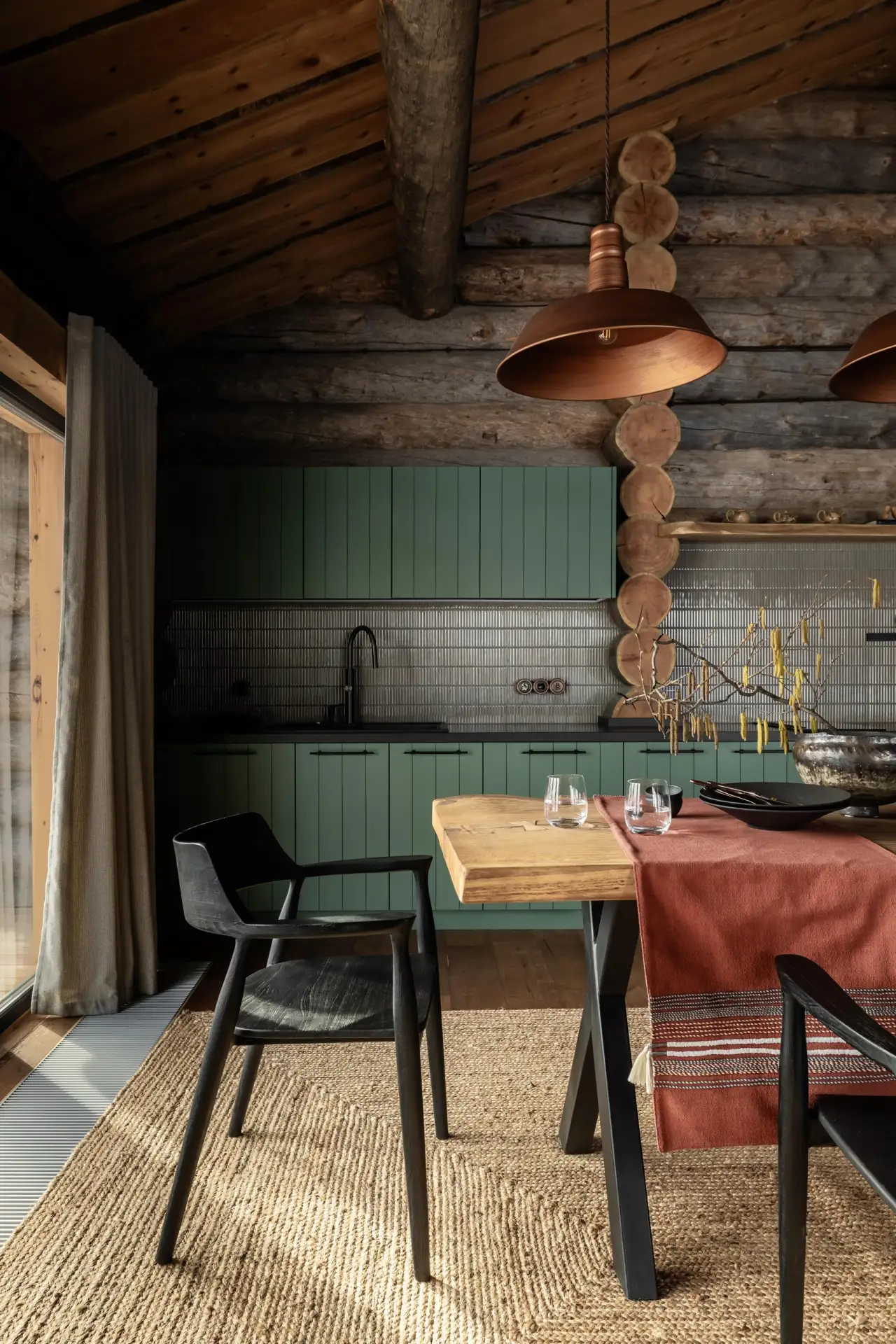 Дизайнер Кен Фалк случайно заехал в гости к подруге, архитектору Нэнси Мак и ее мужу Чэду Смиту, барабанщику Red Hot Chili Peppers, в недавно купленный ими дом в Монтане. И за ужином он сразу получил заказ на декорирование шале, но с интерьерами без клише горной эстетики.
