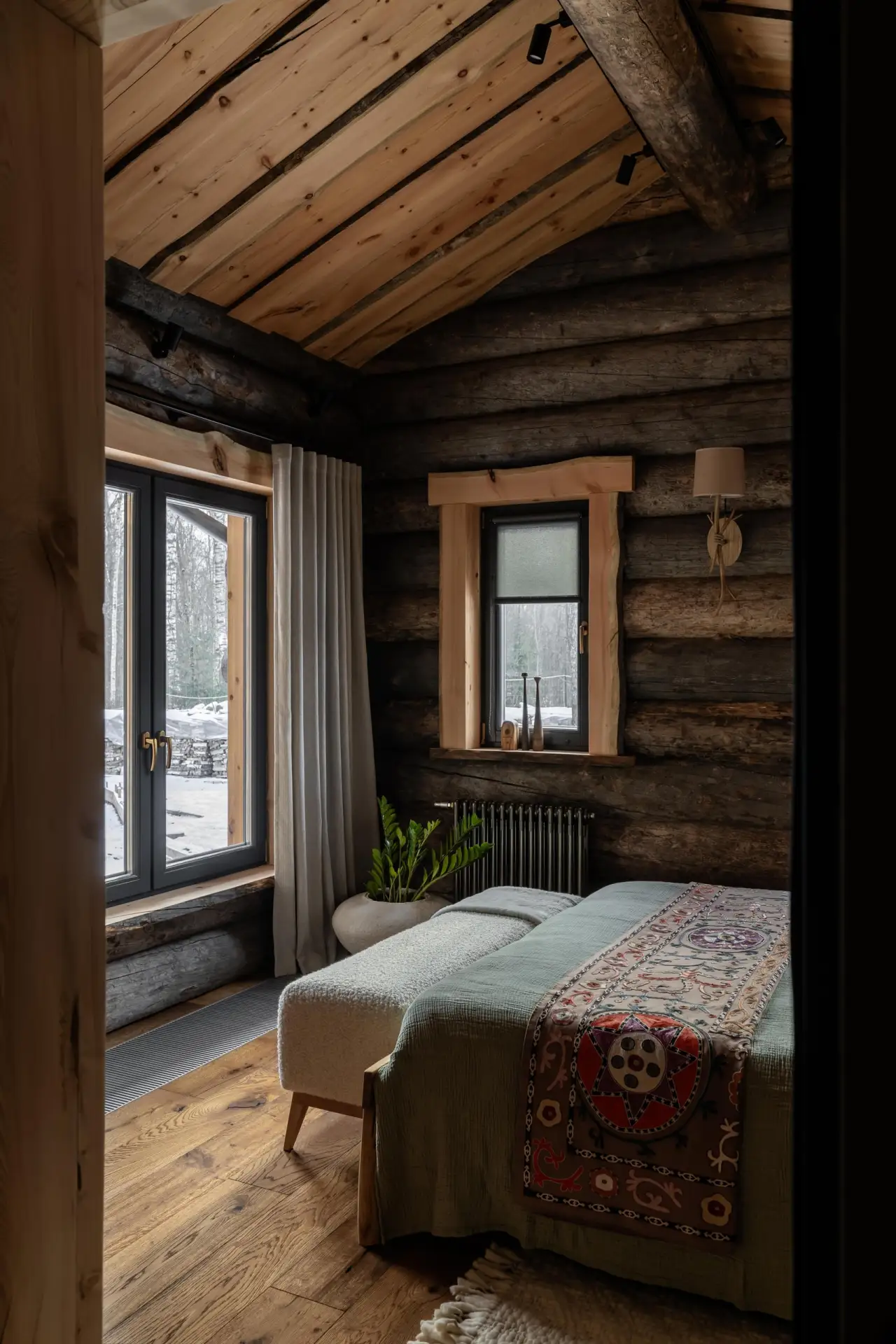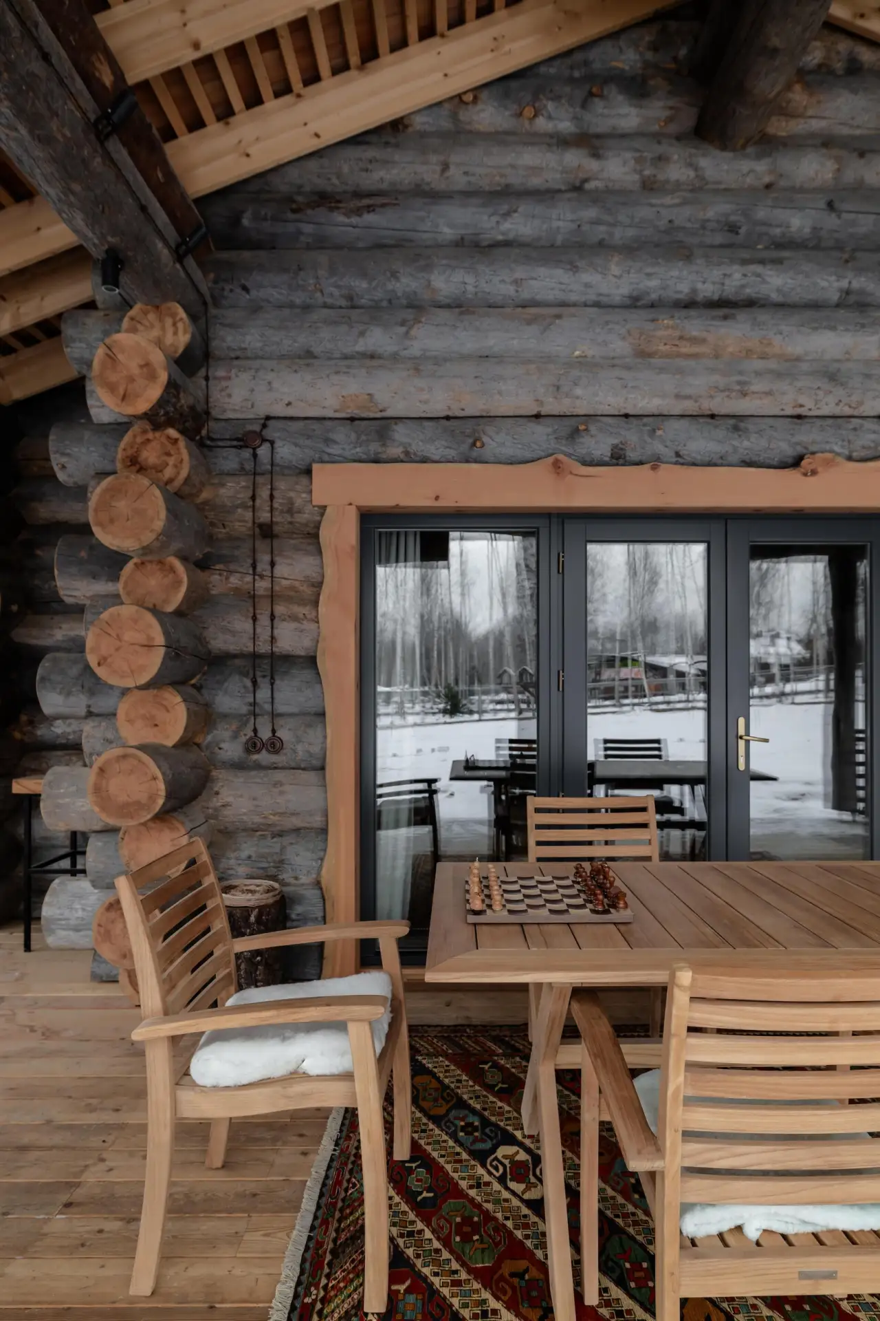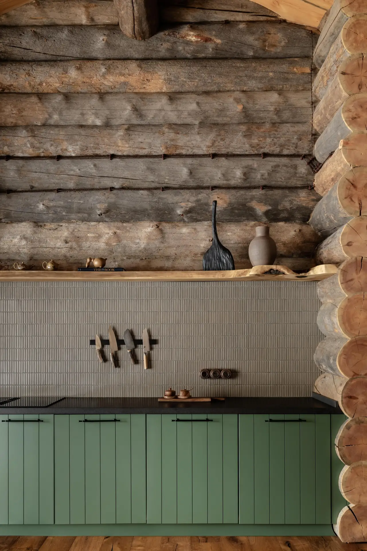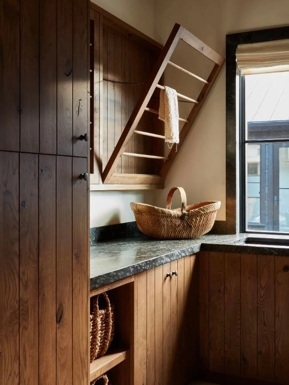 Дизайнер Кен Фалк случайно заехал в гости к подруге, архитектору Нэнси Мак и ее мужу Чэду Смиту, барабанщику Red Hot Chili Peppers, в недавно купленный ими дом в Монтане. И за ужином он сразу получил заказ на декорирование шале, но с интерьерами без клише горной эстетики.
