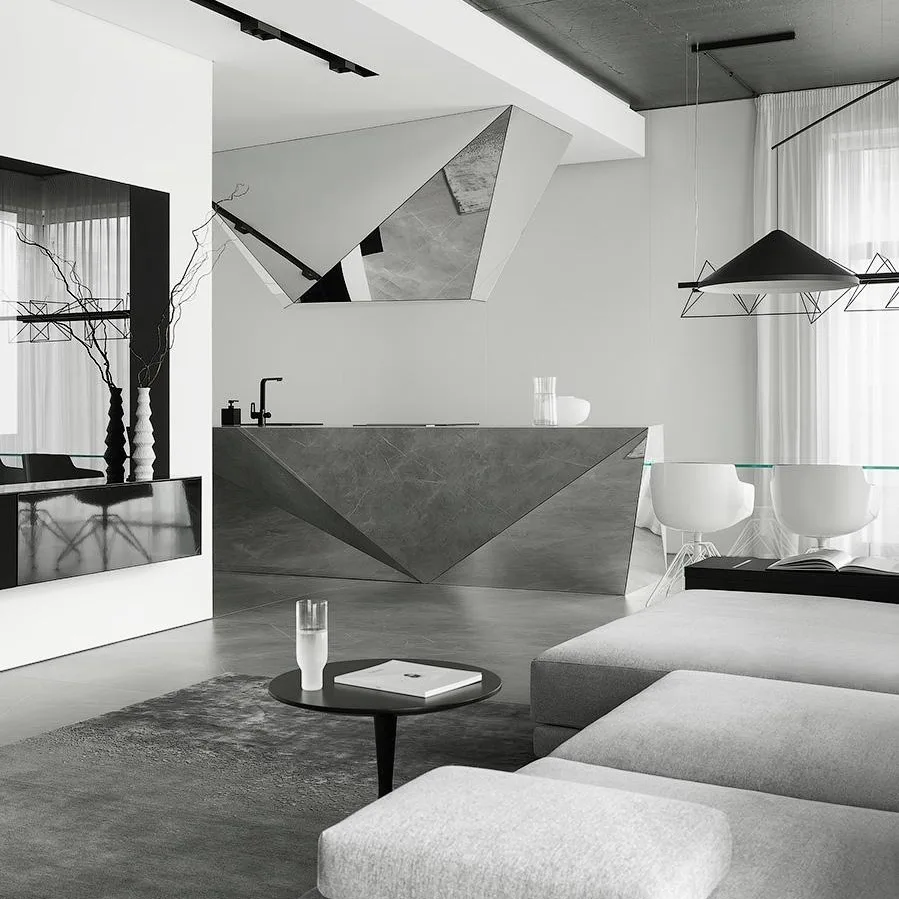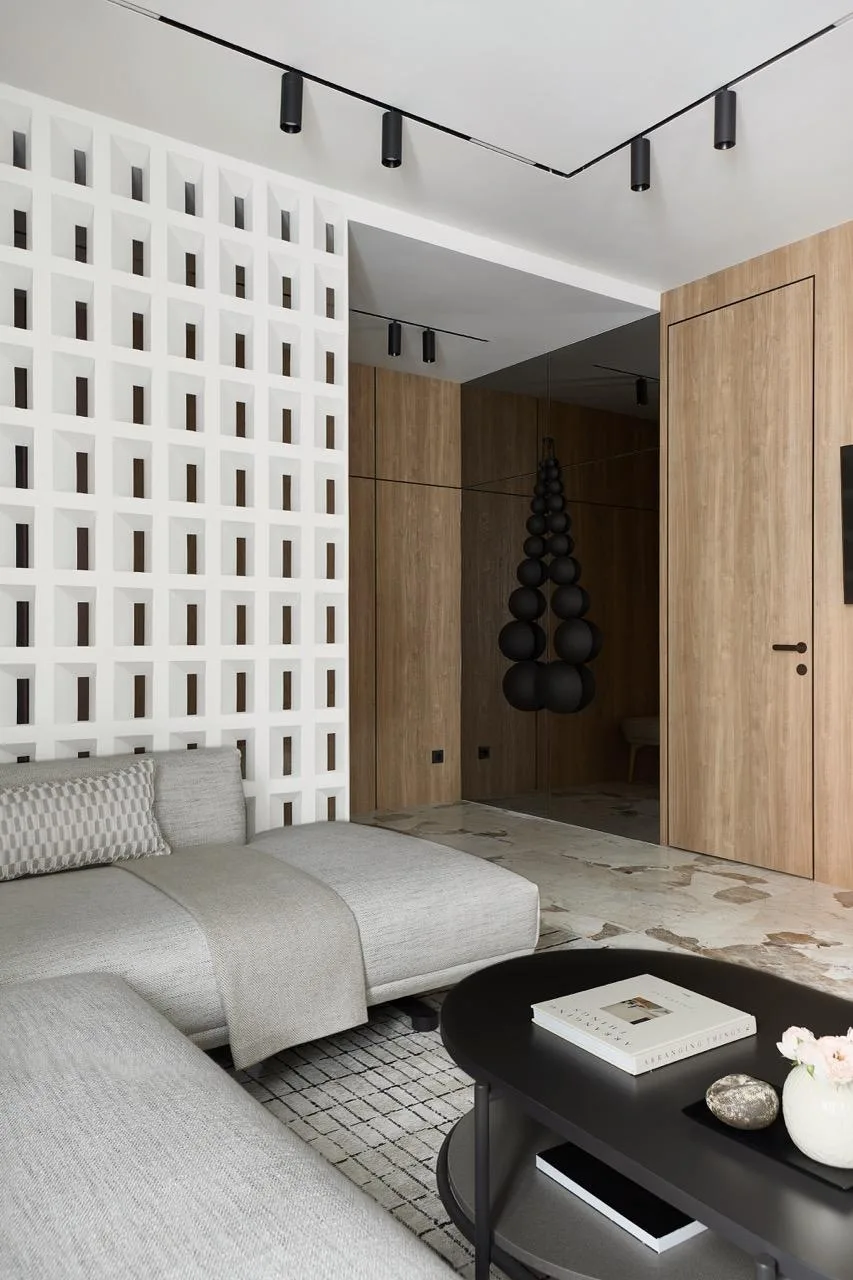 Акцентный камень и динамичный декор: квартира 126 м² в Москве