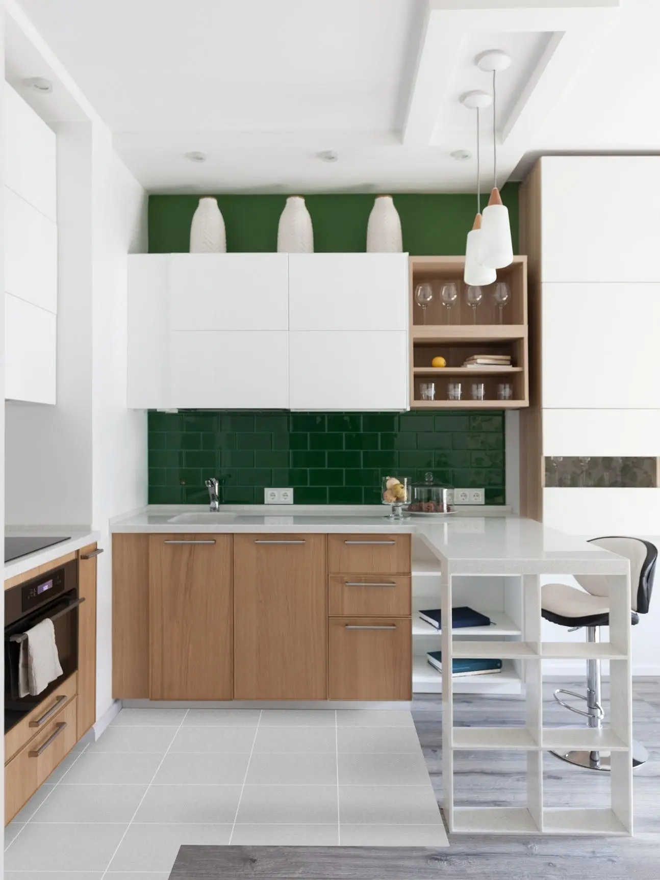 ✓ Самая частая проблема — много кухонных приборов. Дороже и опрятнее выглядит кухня, свободная от визуального шума, бесконечных слоев не сочетающихся между собой предметов.