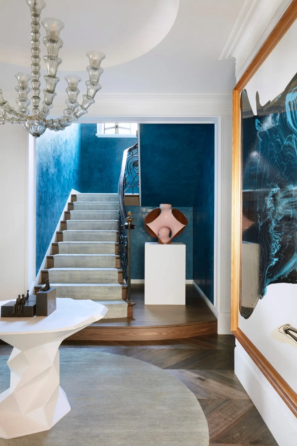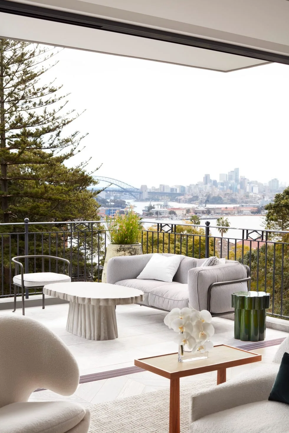 Двухуровневую квартиру в Сиднее полностью переделали: было 465 м² тесных коридоров и маленьких комнат, стало просторное жилье с видом на город. Архитекторы Dylan Farrell Design добавили интерьеру то, что редко встретишь в Австралии — лепнину, состаренные поверхности и дух парижских квартир XIX века.