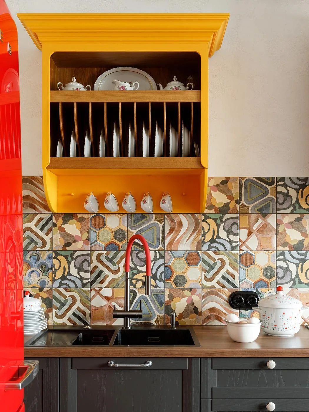 Яркий кухонный фартук — простой, но действенный способ придать любой кухне «изюминку» и эффектный вид. Примеры — в нашей подборке!