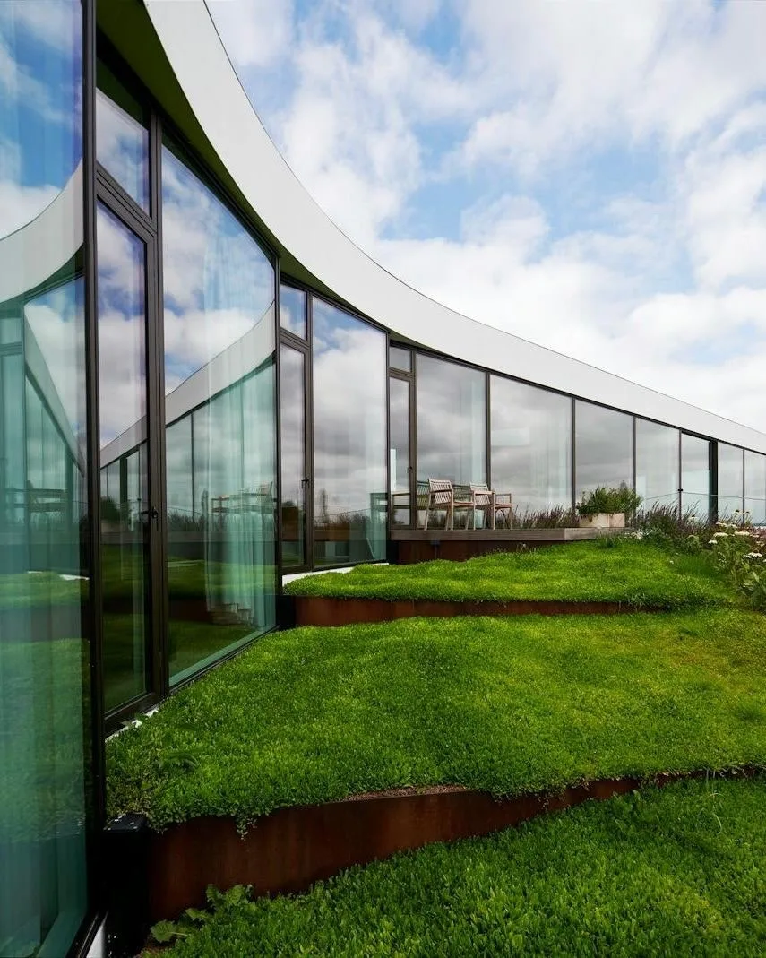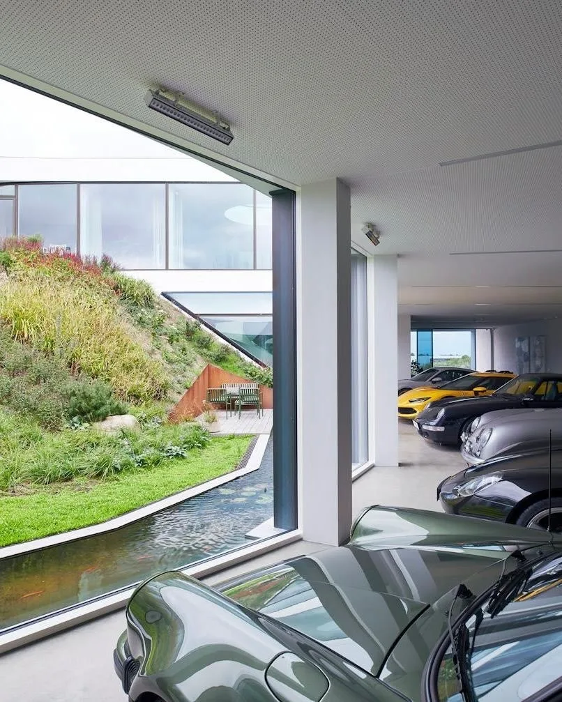 Вилла по проекту BIG в Дании: зеленая крыша, стеклянные стены и коллекция Porsche