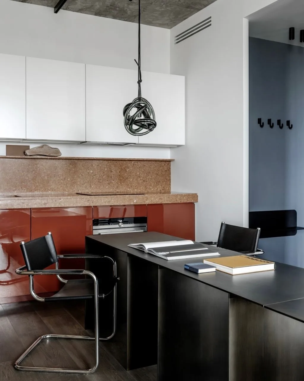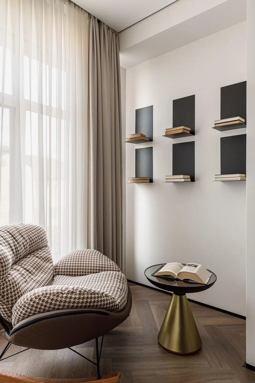 «Заказчик — инвестор, ориентированный на долгосрочную аренду. Основное пожелание — создать эстетически выразительный, но универсальный интерьер для аренды, пространство, которое легко воспринимается с первого взгляда и не теряет актуальности со временем. В основе нейтральная палитра с выразительными акцентами, работа с пропорциями и объемами. Цвет используется как архитектурный инструмент — для зонирования, смены настроения и пространственного сценария», — рассказала дизайнер.