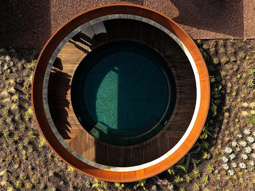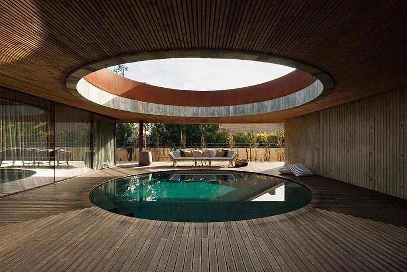 Сердце дома — круглый двор, в центре которого расположен бассейн. Все помещения расположены вокруг центрального двора. Комнаты выходят к бассейну стеклянными стенами, так что из любой точки виден центр дома. При этом сохраняется приватность — за счет продуманной геометрии.