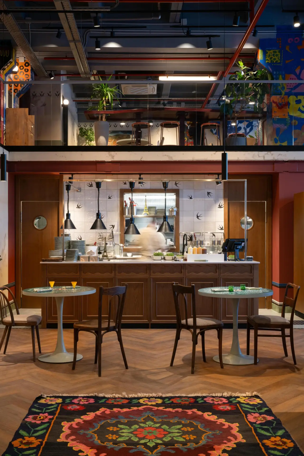 Когда-то на месте этого красочного и уютного пространства был завод, и благодаря дизайнеру Юлии Мусиной и ее команде индустриальное помещение получило вторую жизнь.