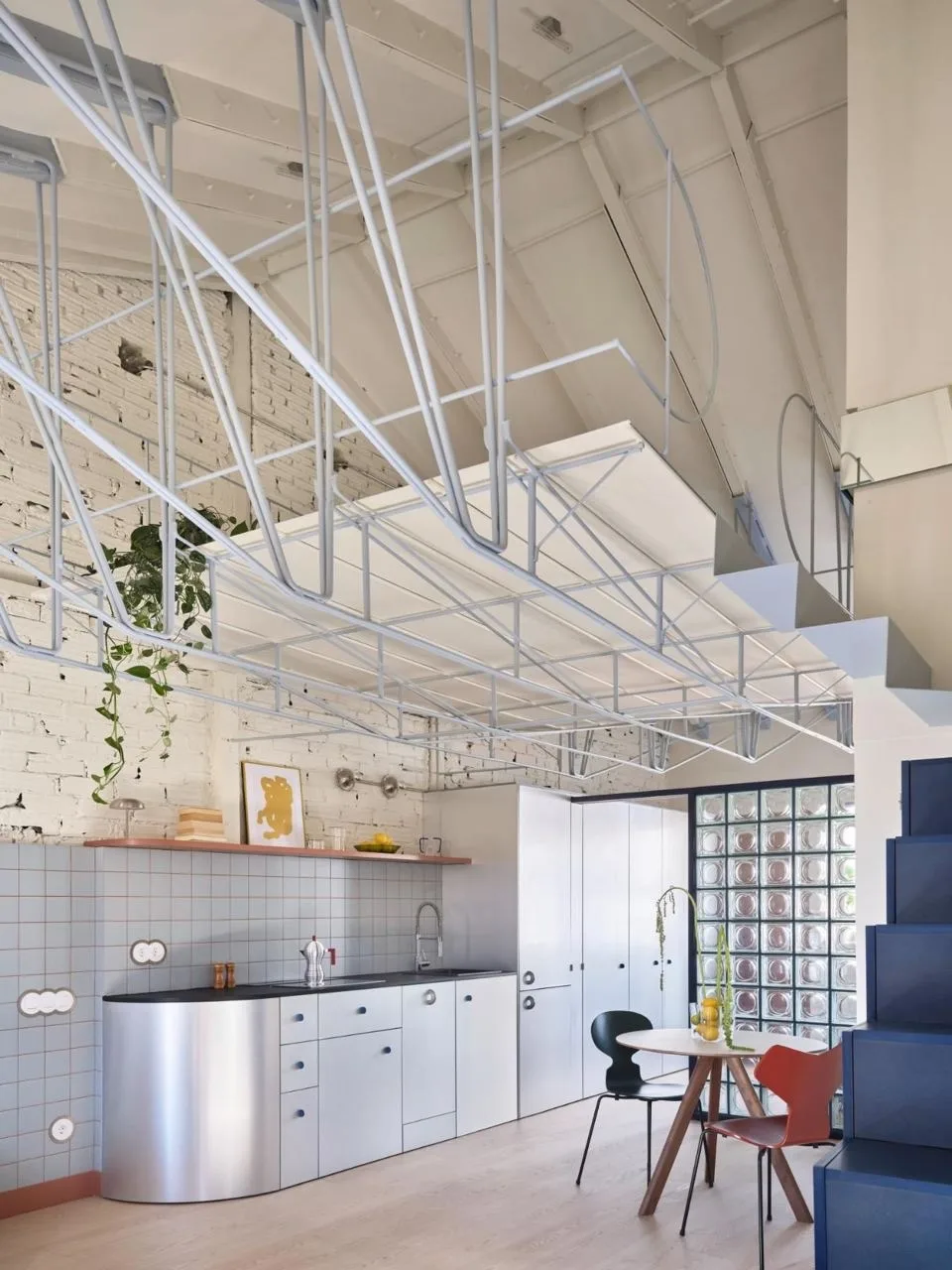 Квартира на крыше в Мадриде: голубое небо, терракотовая керамика и сталь