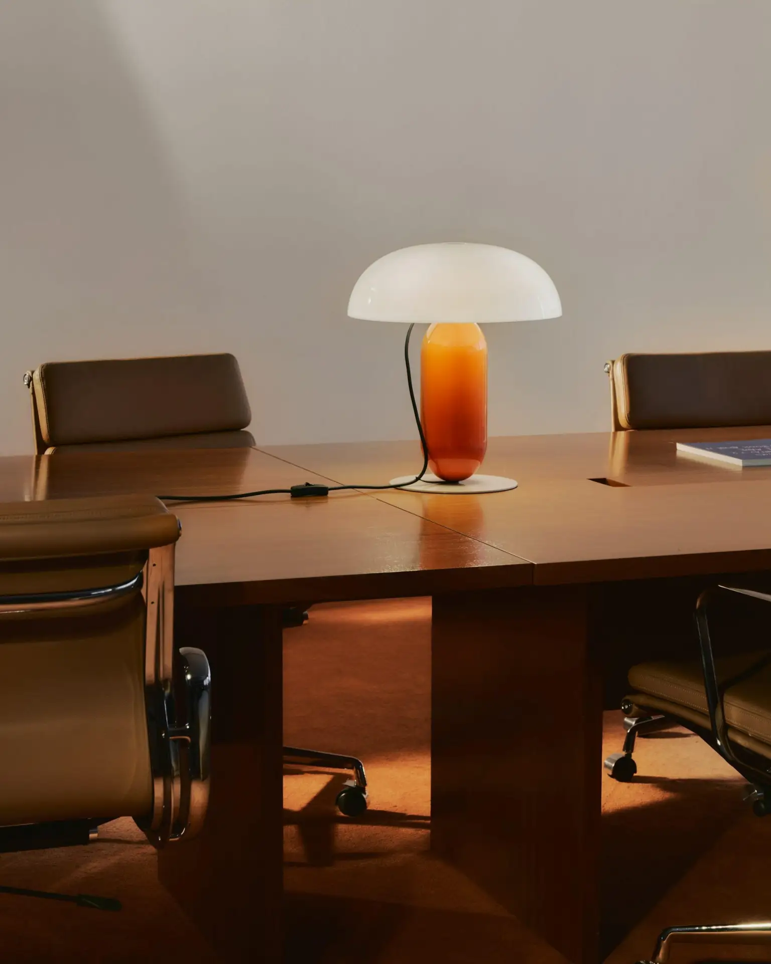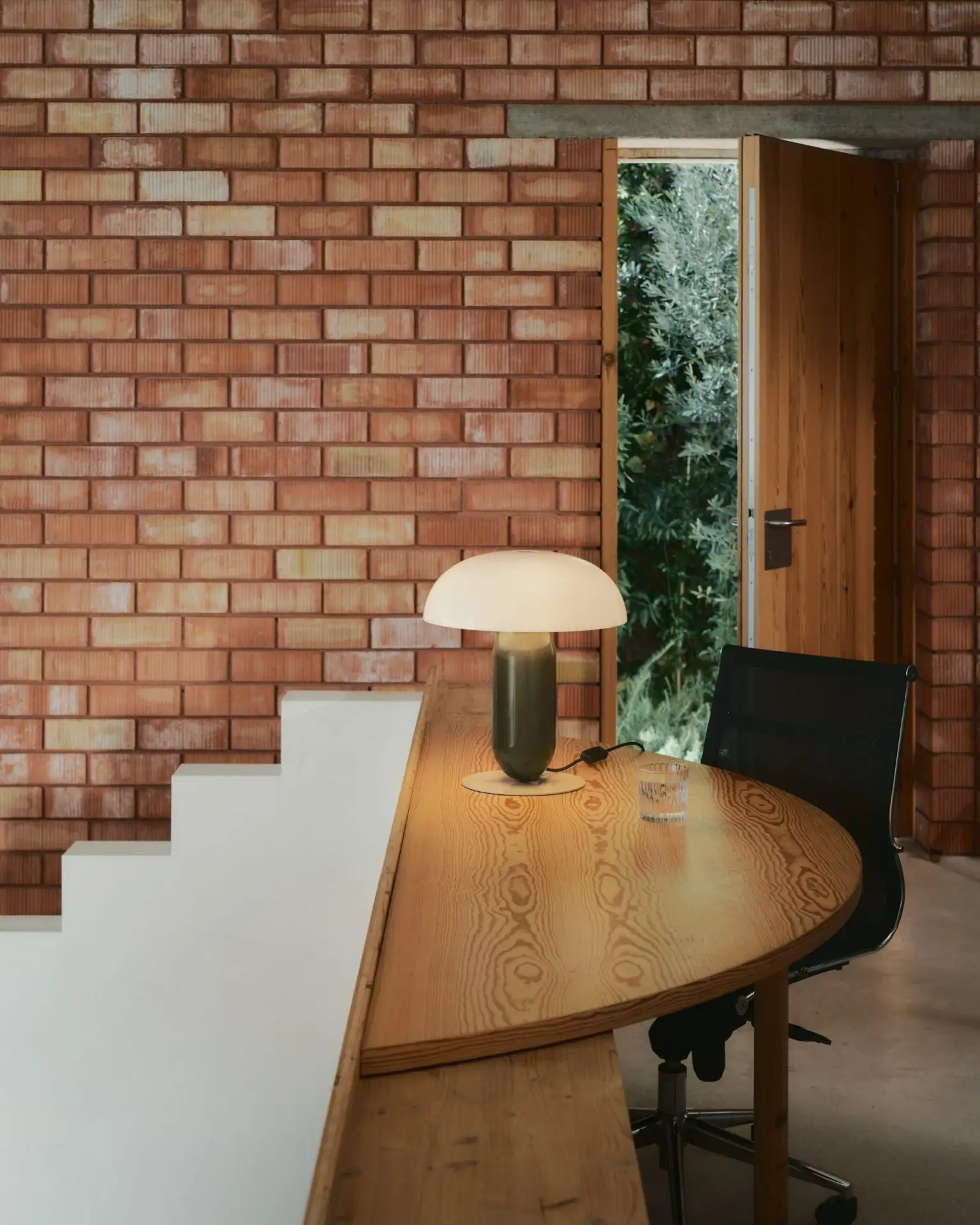 Матиас Хан переосмыслил обычную настольную лампу, превратив ее в геометрическую скульптуру. У Gambosa нет видимых соединений — кажется, что детали просто балансируют друг на друге. Лампа сделана из стали и поликарбоната. Благодаря этому материалу плафон мягко светится изнутри, создавая ровное, рассеянное освещение. Никаких резких теней — только теплый, обволакивающий свет.