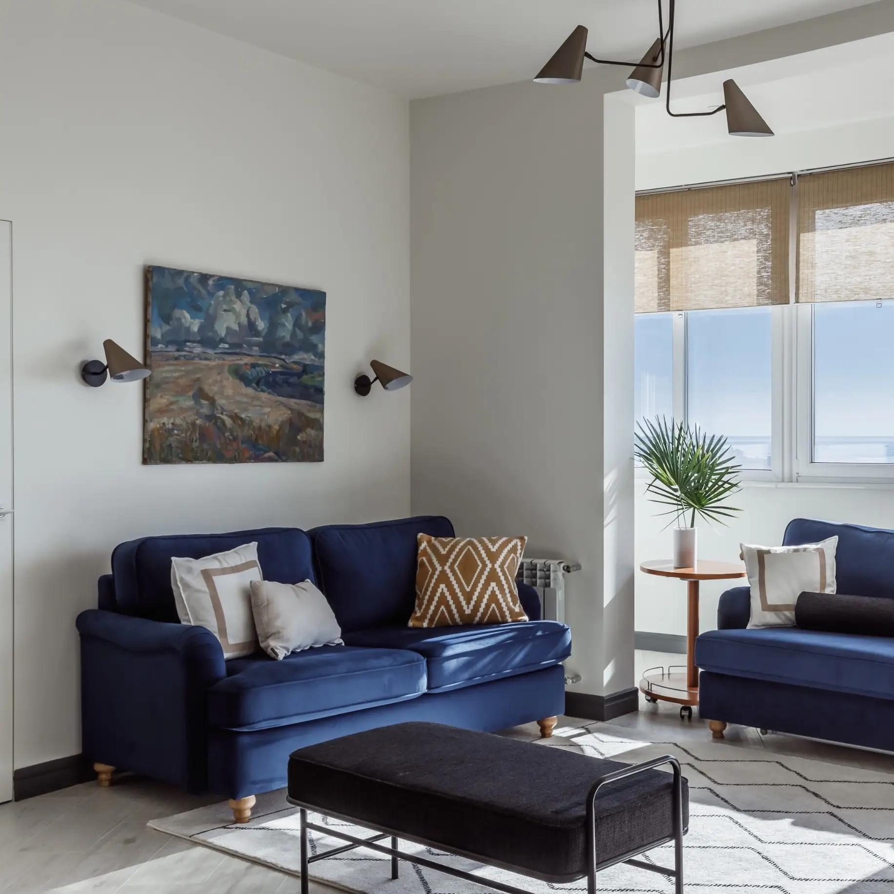 ✓ Только один светильник создает неуютную атмосферу (особенно, если свет холодный). Поэтому советуем уделить внимание подсветкам, бра, торшерам — поиграйте с разными сценариями.