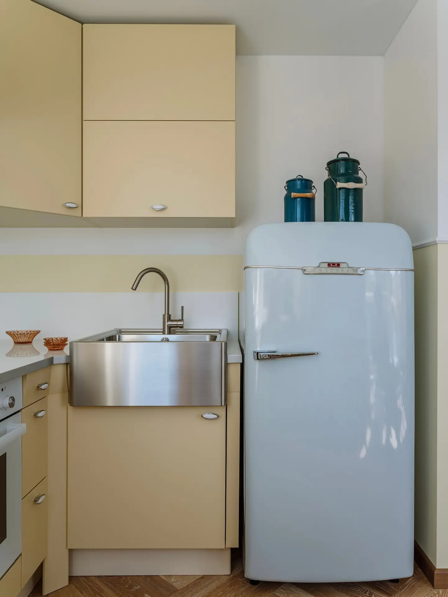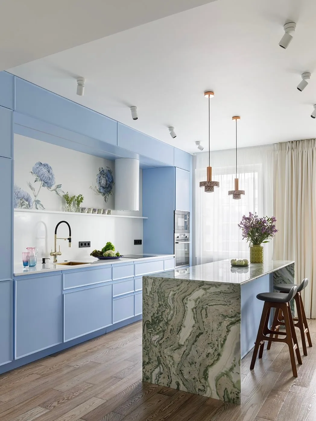 Мятно-зеленый, пудрово-розовый, жемчужно-серый, небесно-голубой… Если нравятся пастельные оттенки и разбеленные краски, попробуйте использовать их на кухне.
