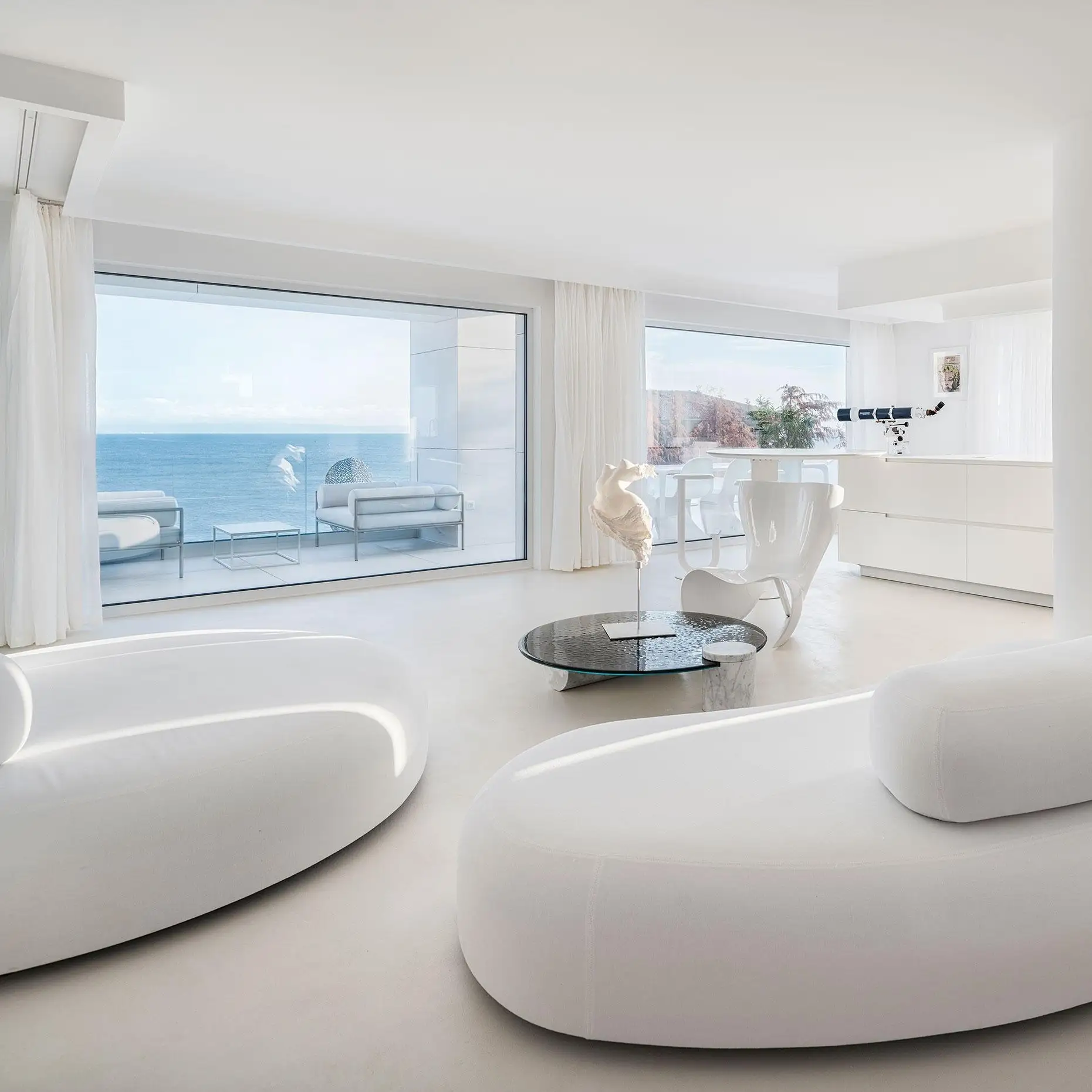 В некотором смысле Casa Laberinto стал кульминацией творчества Блока. Архитектор спроектировал комнаты округлой формы, вместо дверей — плавные извилистые переходы, а для освещения продумал специальные световые люки. Окна обрамляют живописные виды на море — бескрайний синий пейзаж становится частью внутреннего пространства.