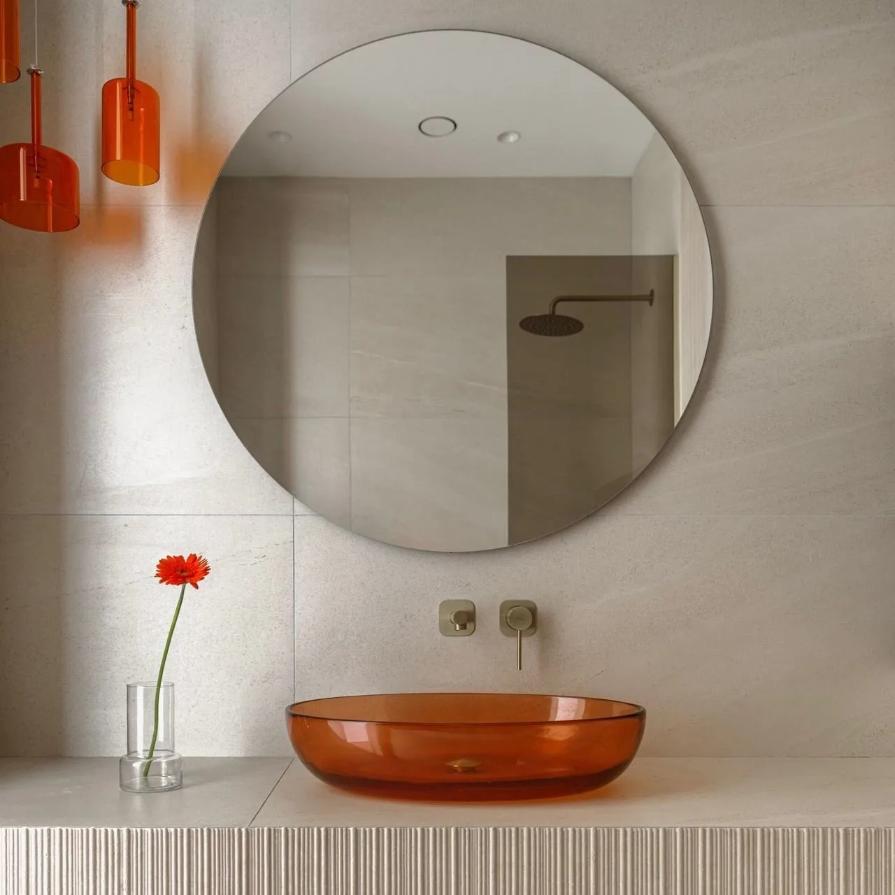 Очень важно не забывать про пол: при расчете высоты тумбы учитывайте толщину покрытия. И, конечно, высоту самой раковины, если она будет расположена на столешнице.