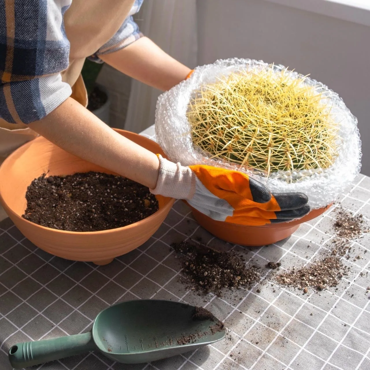 ✓ Кактусам нужен особый дренирующий субстрат, чтобы вода легко уходила. Можно самим приготовить смесь из садового грунта, торфа и песка, либо приобрести в магазине специальный грунт для кактусов.