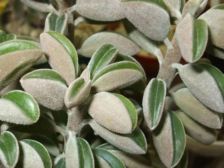 Отличается мясистыми листьями, которые похожи на сложенный пополам кружок или полумесяц, образующие компактные розетки в виде звезды.