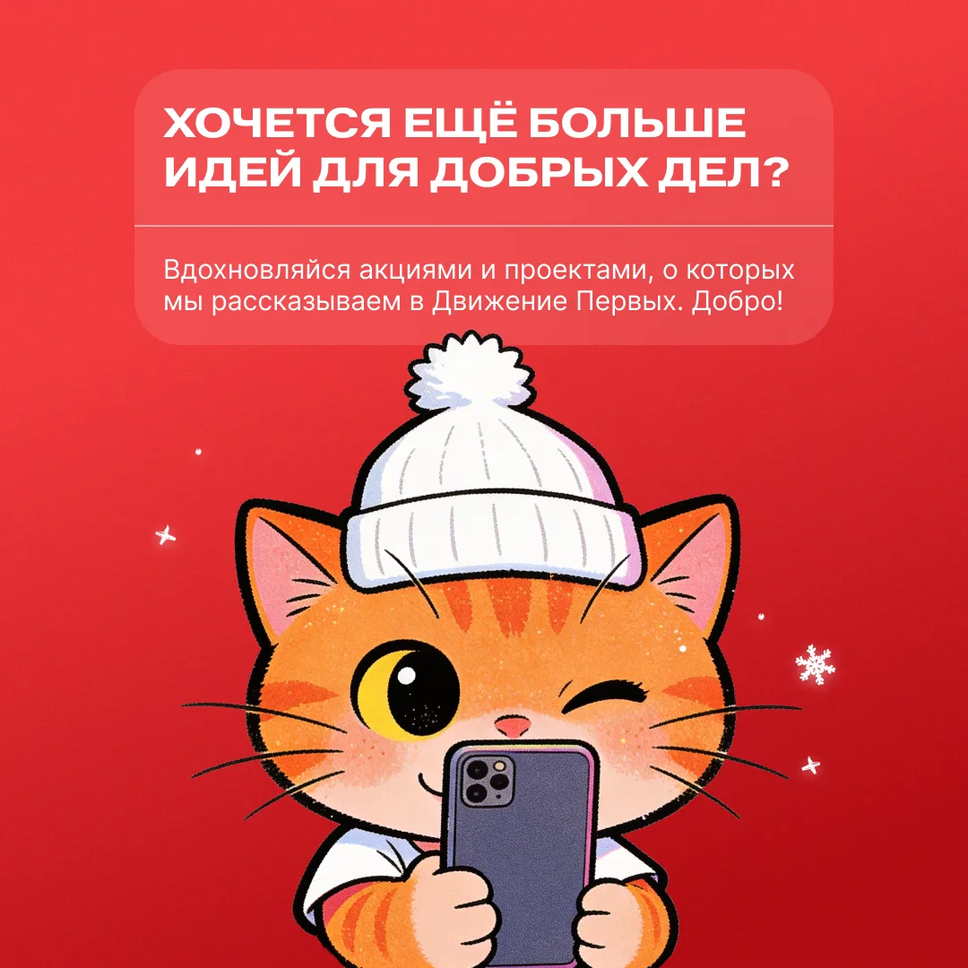 Проведи эти морозные деньки, даря тепло близким и незнакомцам. Ищи идеи в карточках ↗️ а ещё больше возможностей проявить себя ➡️ в канале Движение Первых. Добро!