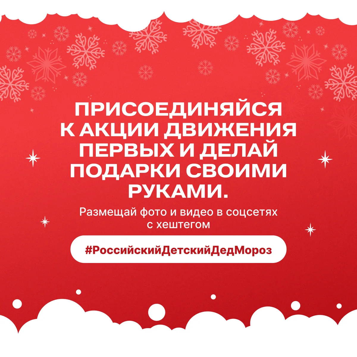 Присоединяйся к акции и ты! Готовь поделки, подписывай открытки, снимай видеопоздравления и делись ими в социальных сетях с хештегом #РоссийскийДетскийДедМороз 🎁