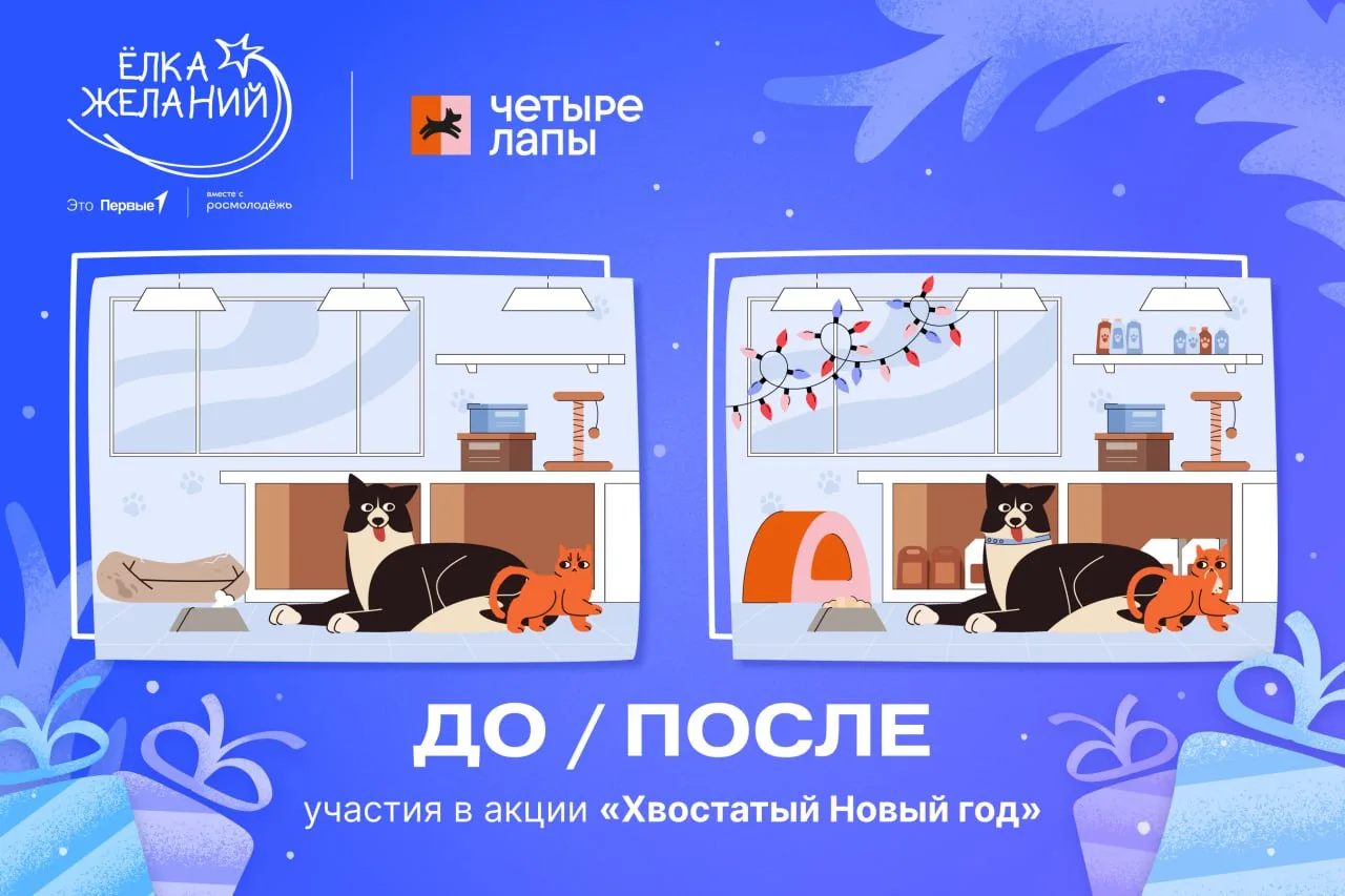 Хотим, чтобы как можно больше пушистиков почувствовали теплоту сердец Первых в самую волшебную ночь года. Поэтому приглашаем тебя присоединиться к специальному формату «Ёлки желаний», организованному совместно с сетью зоомагазинов Четыре Лапы: