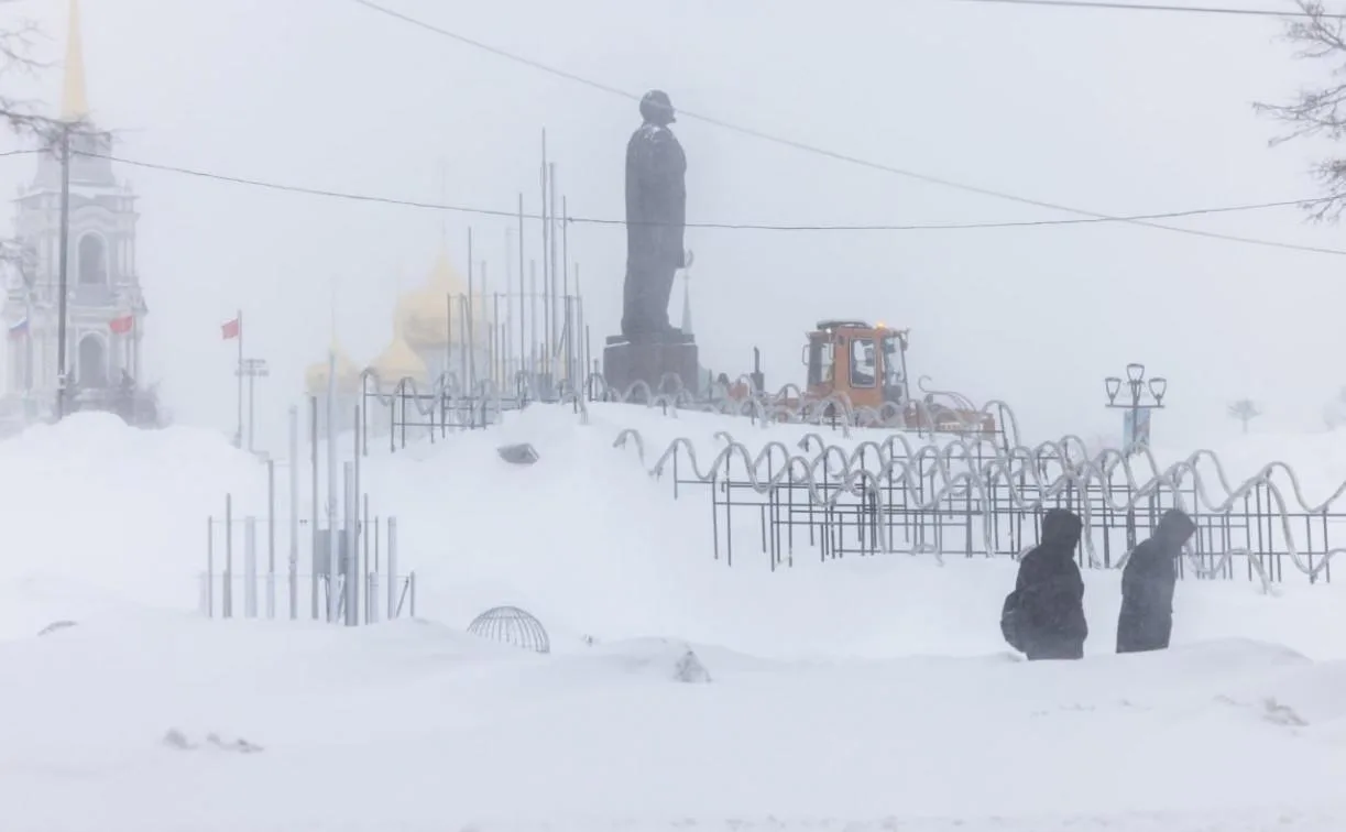 С раннего утра Тулу засыпает снегом. Все, кто мог, ушли на удаленку и остались дома.