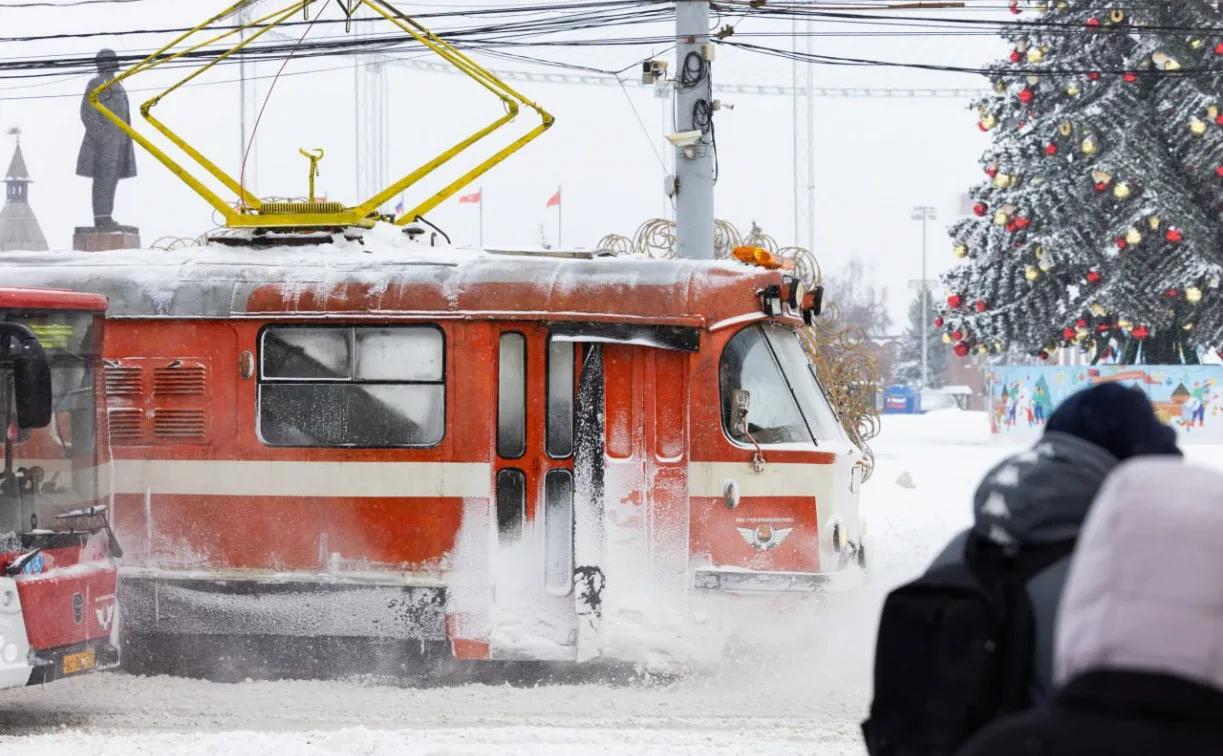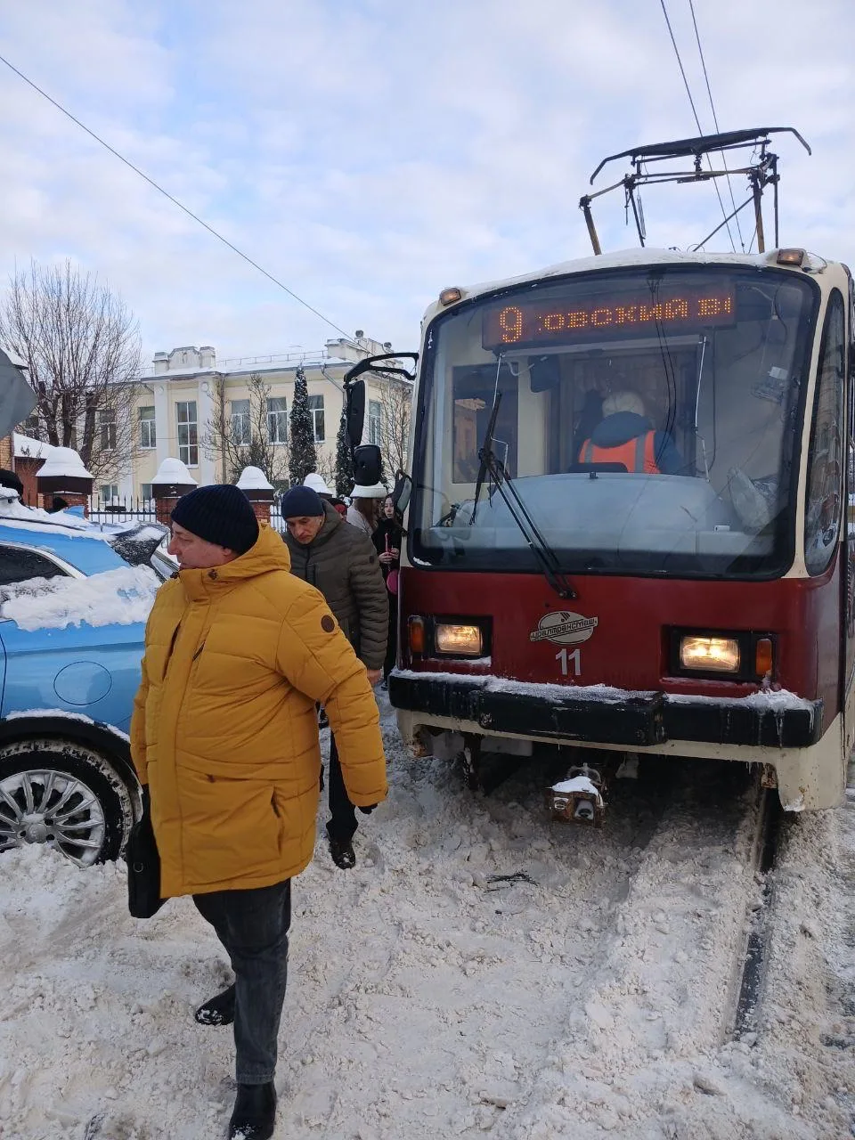 ❗️ Движение трамвайного челнока на проспекте Ленина временно приостановлено из-за снегопада