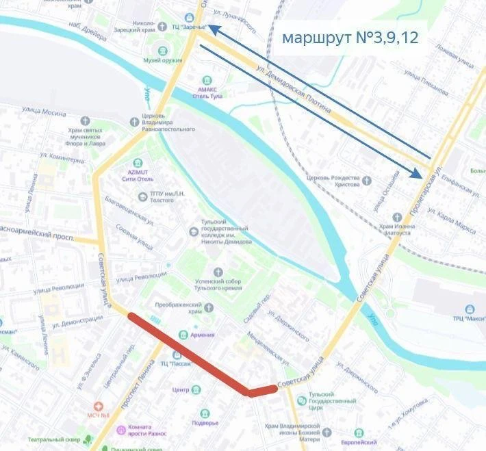 Схема движения маршрутов № 3, 9, 12 изменится. Вагоны будут следовать через Демидовскую плотину.
