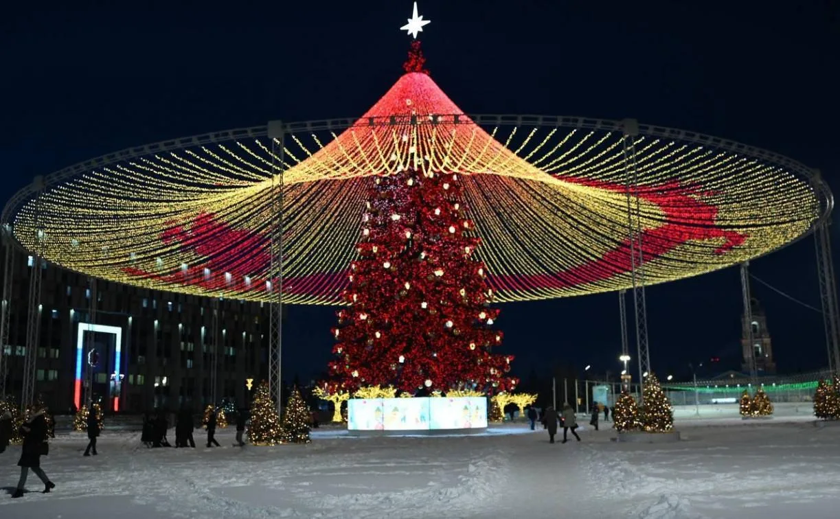 Праздничную атмосферу поддержат и на главной площади города: в ближайшие две недели над самой высокой новогодней елкой России будет парить символ праздника — китайский дракон.