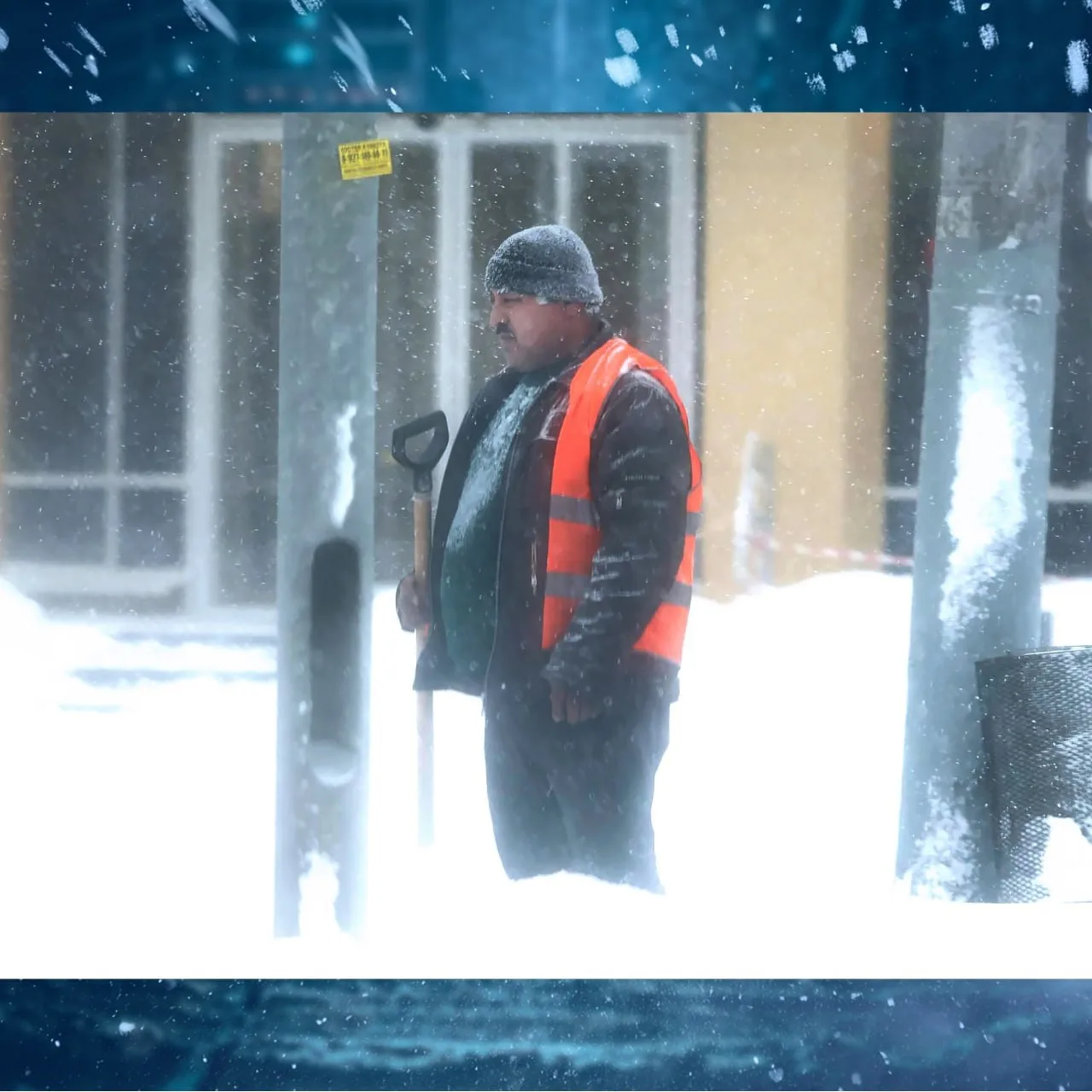 А есть те, кто не просто вышел на улицу добраться до теплого офиса, а работает на улице, помогая городу справиться с непогодой.