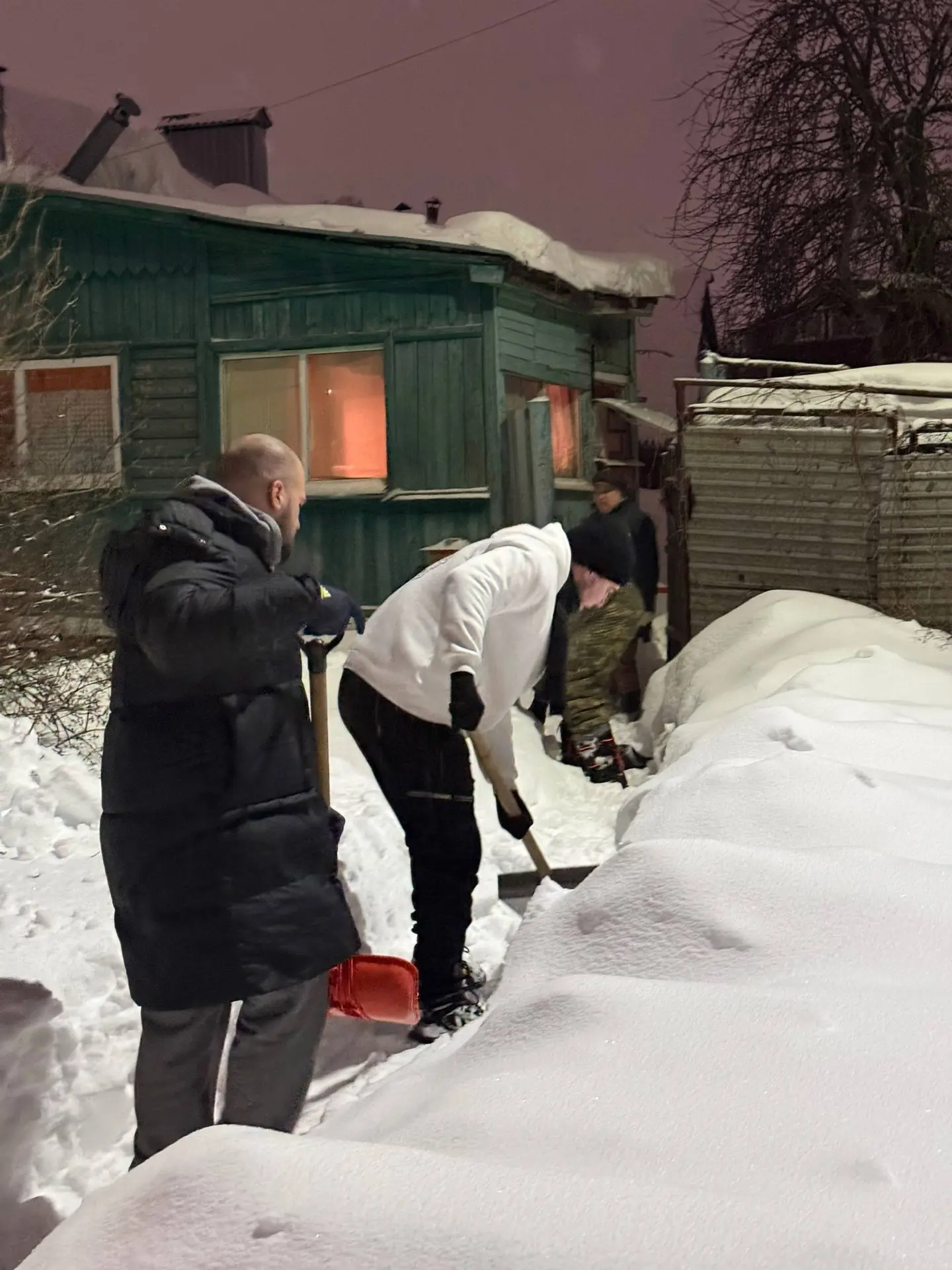 Буквально за считанные минуты под постом в нашем телеграм-канале оказалось множество желающих освободить «снежную пленницу». На место огромного сугроба съехалась толпа молодых людей, которые расчистили выход и дворик от снега.