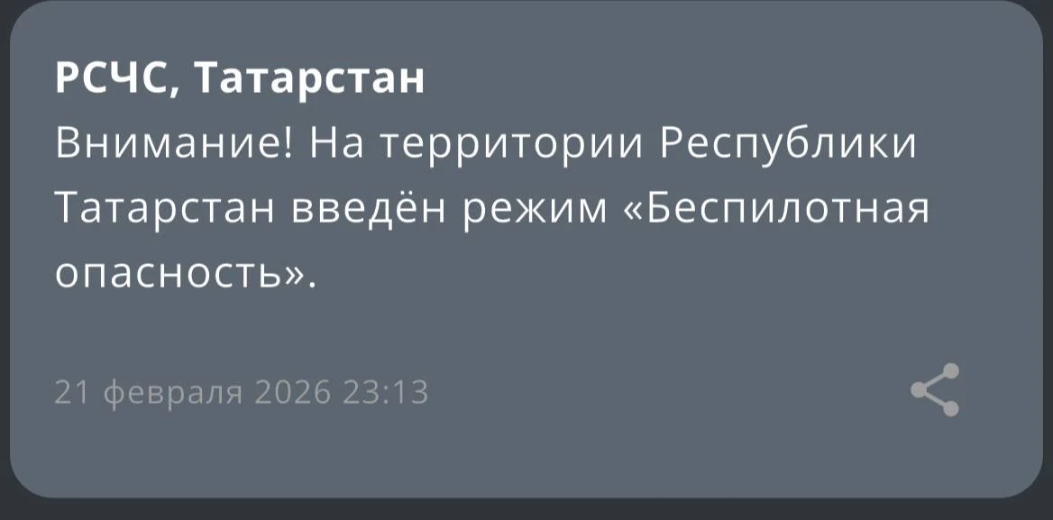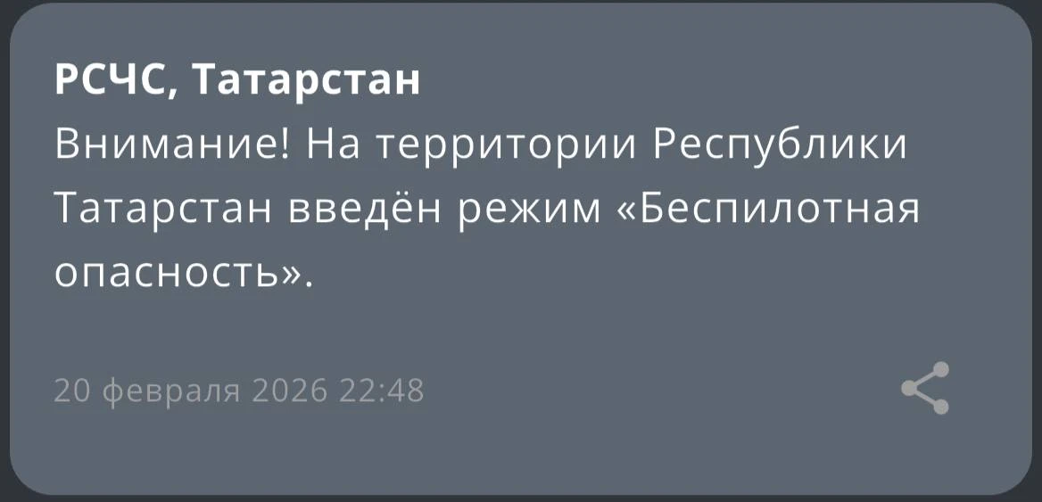 ⚡️В Татарстане объявлен режим «Беспилотная опасность»