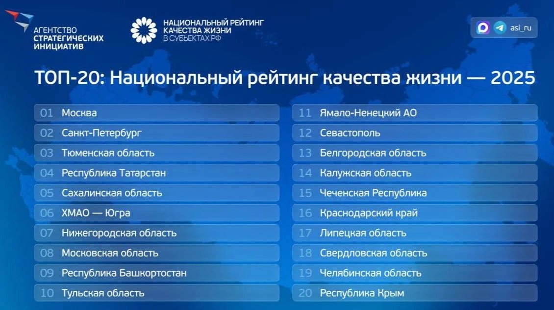 🔝 Татарстан занял 4-е место в рейтинге качества жизни
