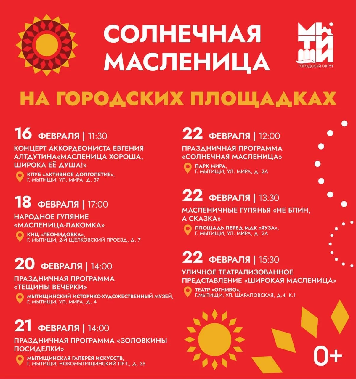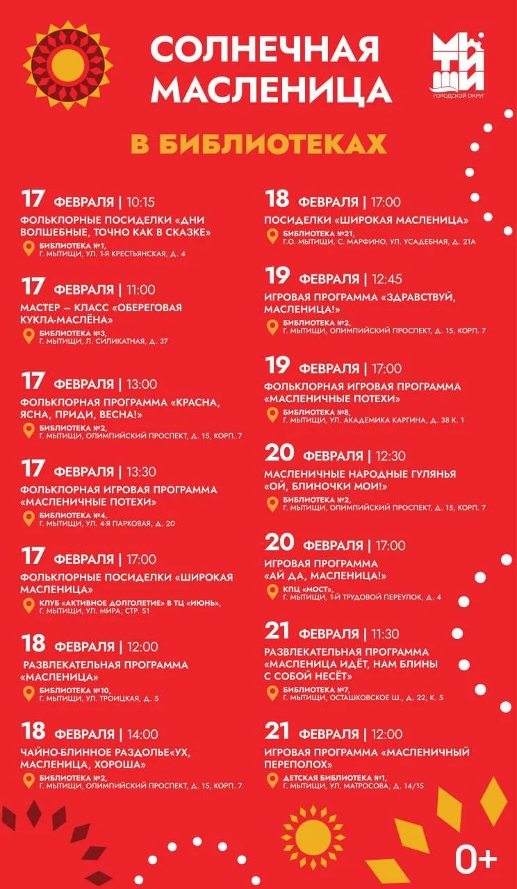 Полное расписание мероприятий Масленицы в Мытищах 🥞