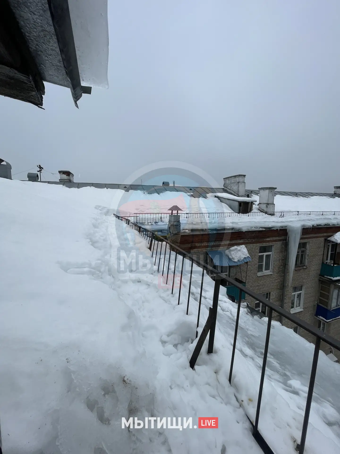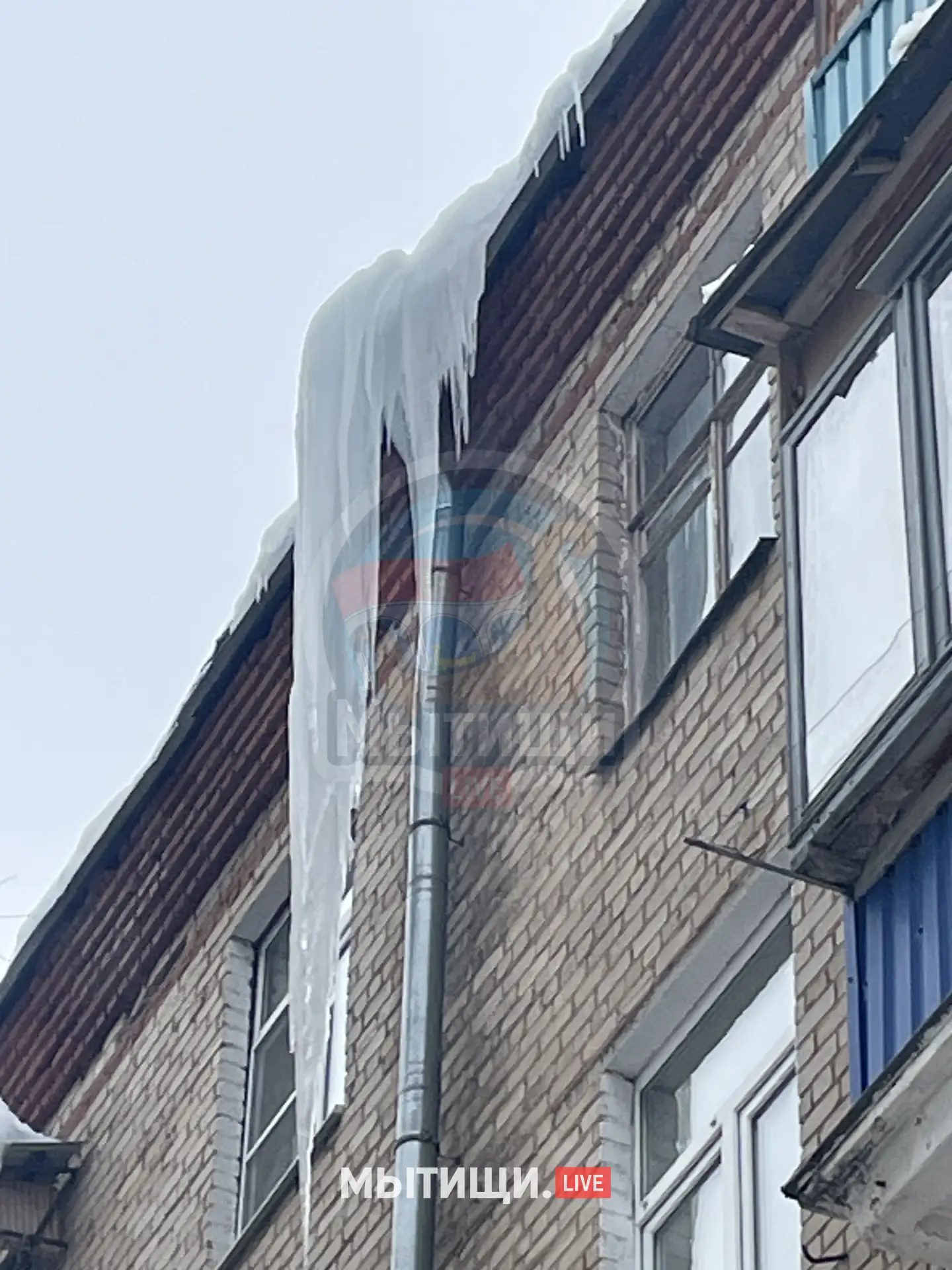 В Мытищах на ул. Трудовая, 12 появились занавески из огромных сосулек - свисают больше чем на два этажа! 🫣❄️