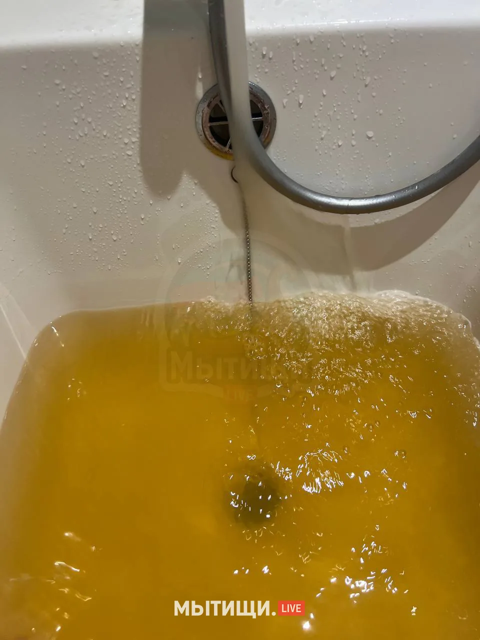 • Жители ЖК «Кит» в Мытищах жалуются на воду бурого цвета с железным осадком. По их словам, за три года эксплуатации трубы пришли в негодность: детей не купают, сами стараются не мыться, воду не пьют и не используют для готовки и стирки.